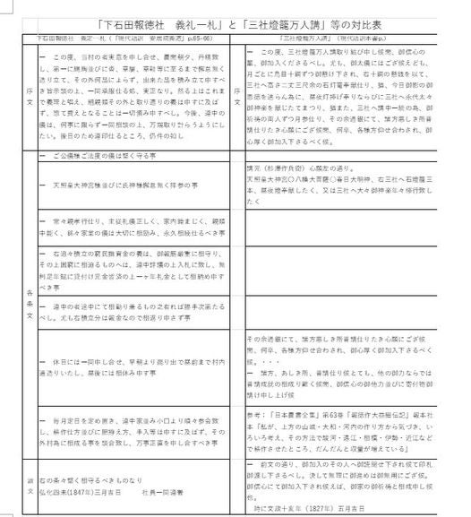 庄七はその後、弟・浅田勇次郎が先に入門していた「万人講」の普及に従事します。「万人講」の天照皇大神宮信仰及び道・橋普請といった社会貢献の思想が遠州の報徳社の義定書に流れ込んでいることが分ります。