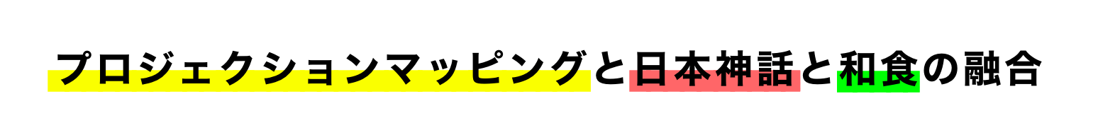 新らしいことに挑戦し続けてきた11年間。今年、新しく大きな一歩を私は踏み出しました。プロジェクションマッピングと和食、そして日本神話を組み合わせた新しい形・価値観を持つコース料理の開発。それはまさしく、私が目指していた文化継承を実現させるような新しい和食のカタチでした。