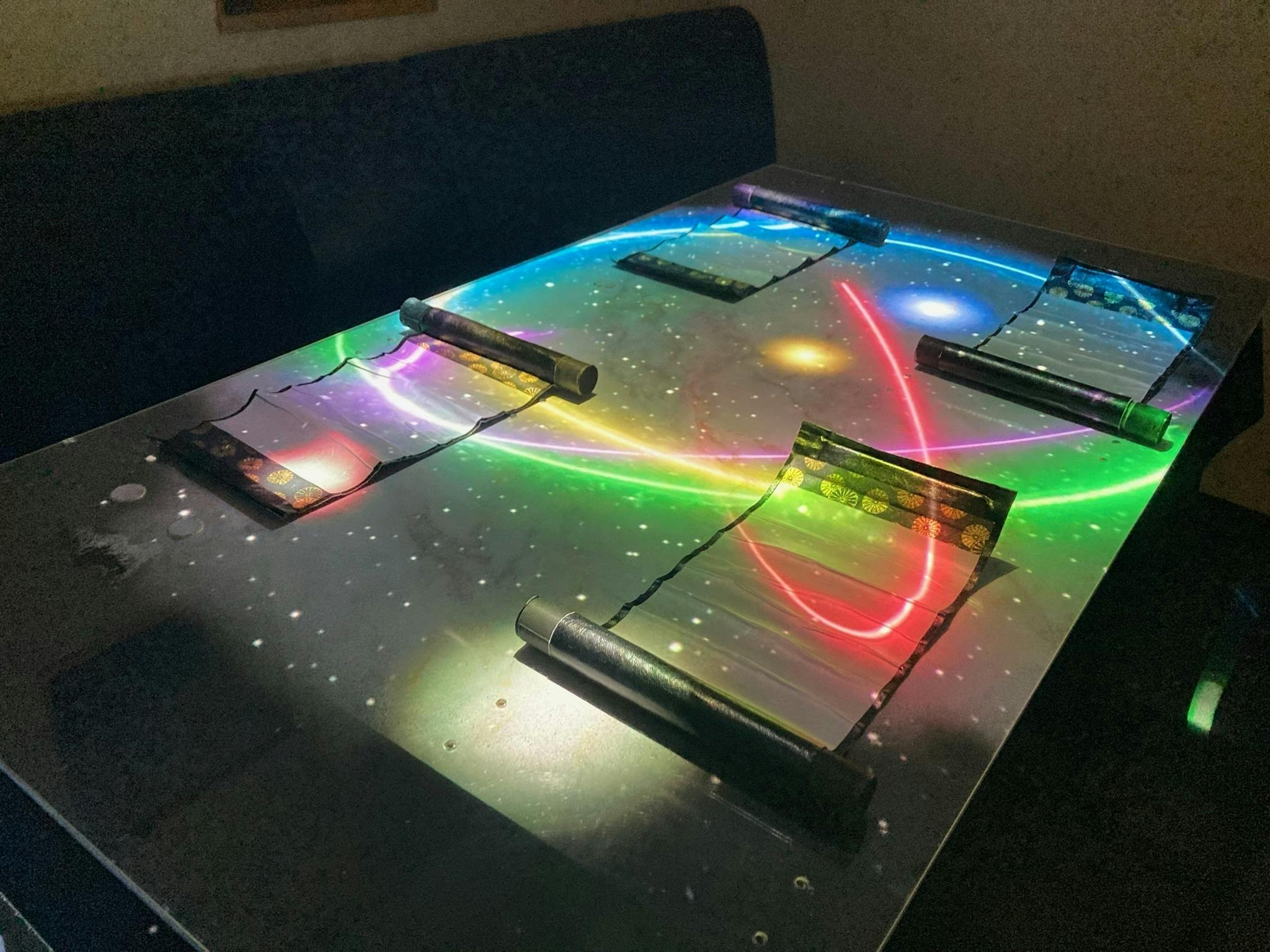 光レーザーの導入はサンリオピューロランドが好きなスタッフの提案です。プロジェクターは平面空間で演出をしていますが、それを立体的に3次元の空間で没入感のある演出をすることはできないだろうかと考えております。資金が集まったらライブ会場のような光レーザーが客席に降り注ぎながら360度光の演出をお楽しみいただけるような空間を目指し、機械の導入を検討しております。