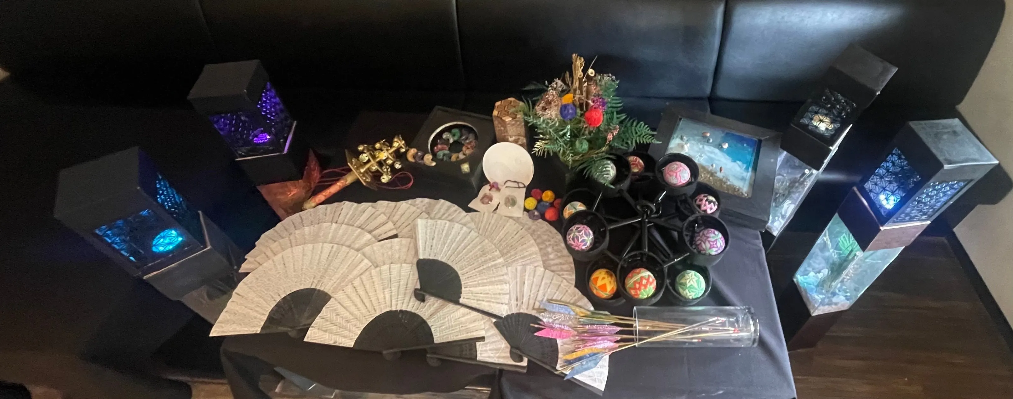 私にインスピレーションをくれたのは、ドバイ万博で目にした日本館の光景でした。そこには、和柄によって意味を伝えられる、和独特のデザインによるおもてなしの空間、そして「閲覧者が何を見ていたのか、を分析して作成された、それぞれの日本の花のアバター」でした。魅せるだけで終わらせない、言葉だけで済ませない、そんな日本のおもてなしの根源を肌で感じることが出来る空間でした。さて、この感覚を自分の店にも作りたい‼︎と考えた私は、思い立ったらすぐ行動!紆余曲折を経て、何とか半年間で全てを完成させました。