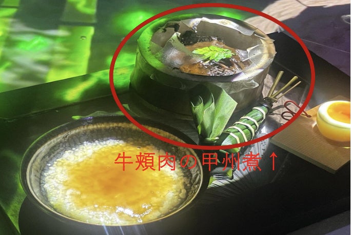 牛ホホ肉の甲州煮には、神々のおもてなしのコースの中の一品です。