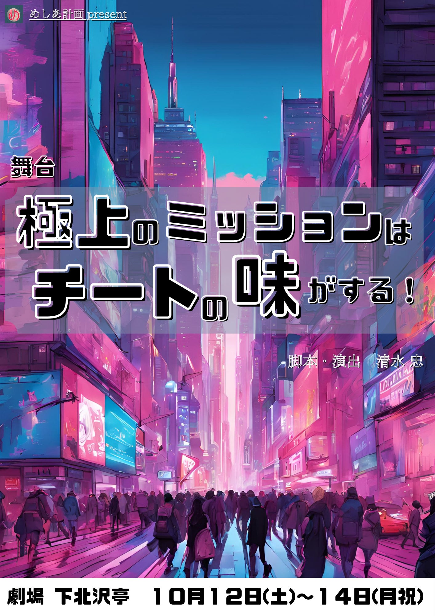 めしあ計画とは、主催の清水忠が演劇業界において不満に思っていた事を解消し、参加して頂いた役者様が舞台や演劇に対し改めて今のあり方や考え方を見つめなおし、仕事及び収入源となるような活動が出来るよな、きっかけとチャンスを与える場として立ち上げたソロプロジェクトである。