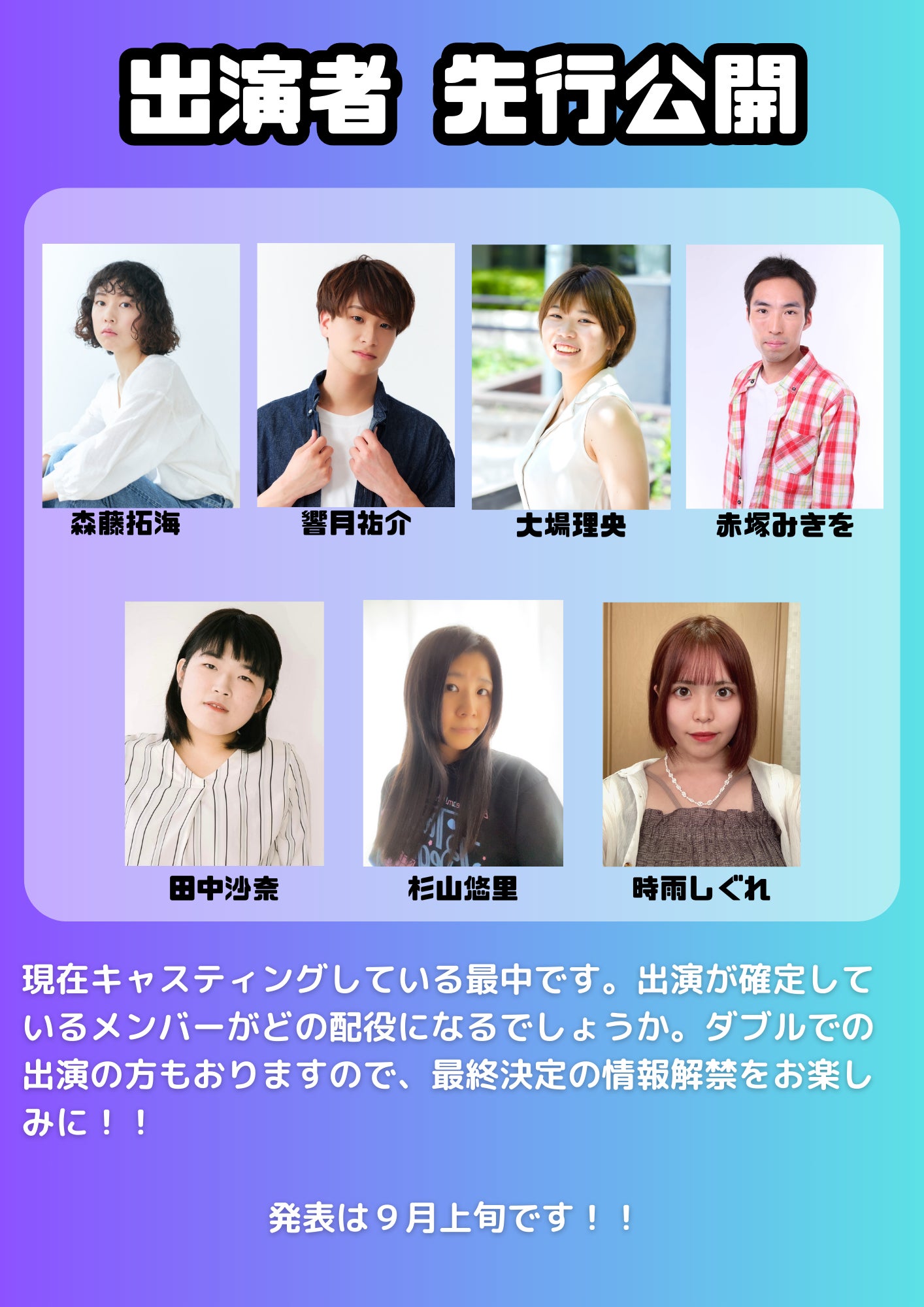 舞台の出演者をクラウドファンディングのページにて限定の先行公開を致します。