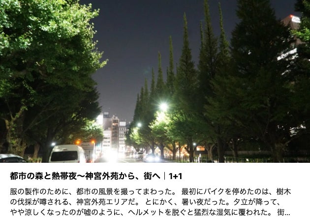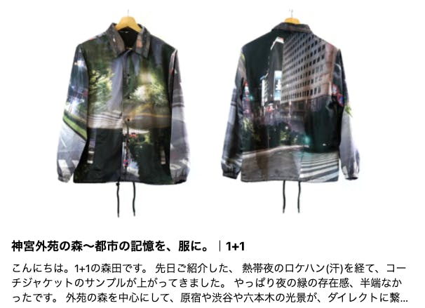 着ることで、誰かが目に止め、「そのジャケットはどこで買ったの?」、「写っているのはどこの場所?」と外苑の森を知っている人、知らない人にも、コミュニケーション・ツールとなり得ます。