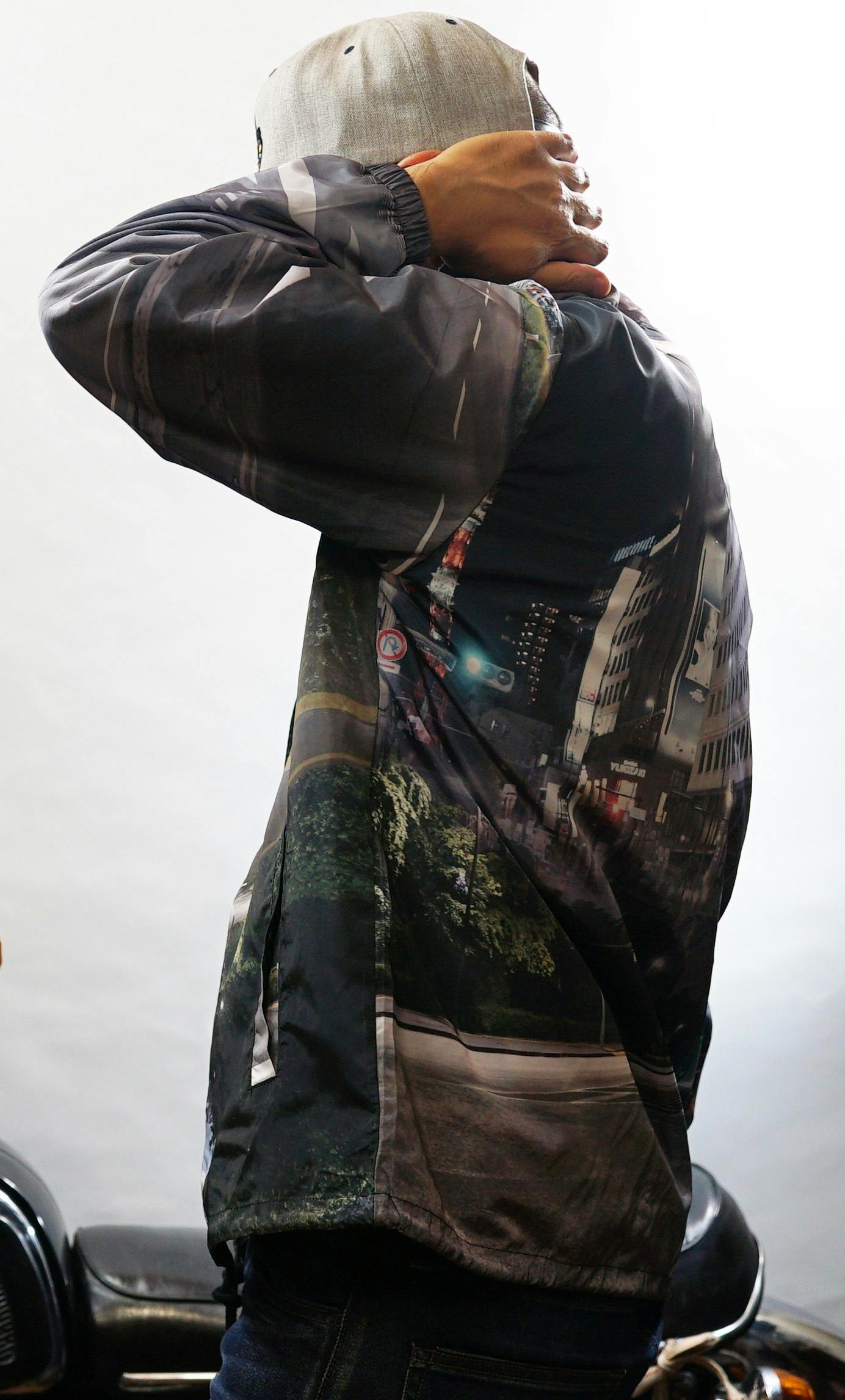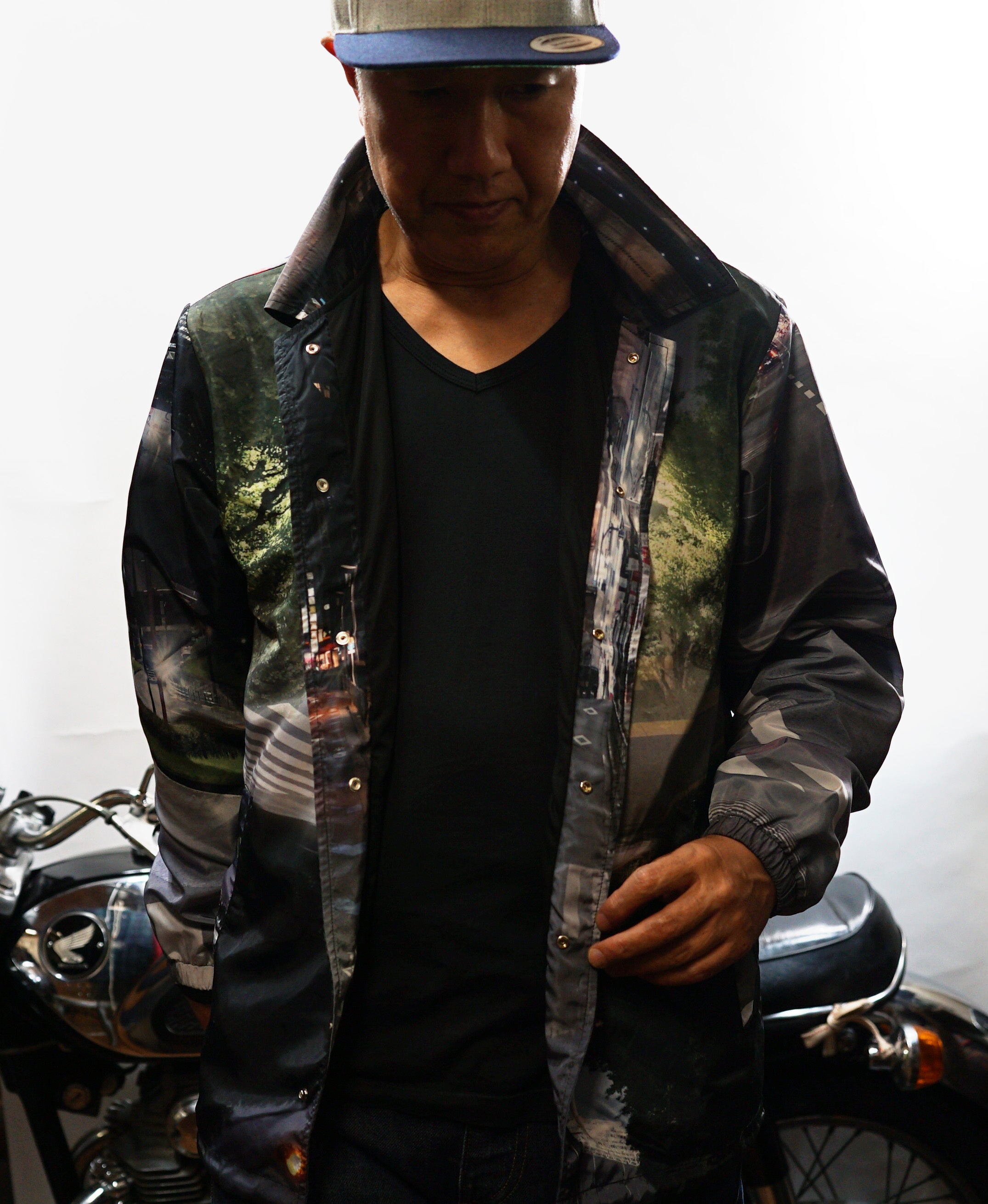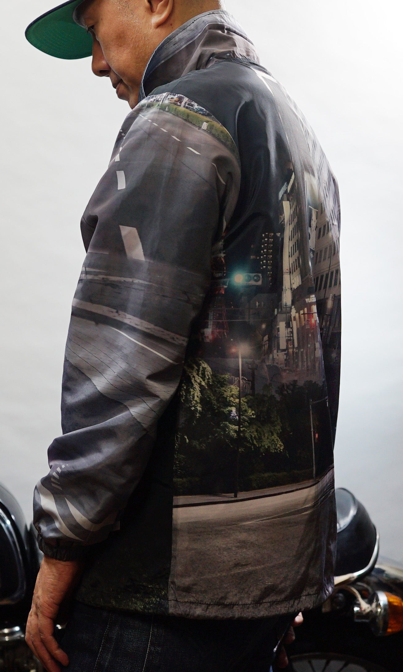通常のコーチジャケットよりも、細かい部分にまで配置にこだわってプリントを入れる事で、