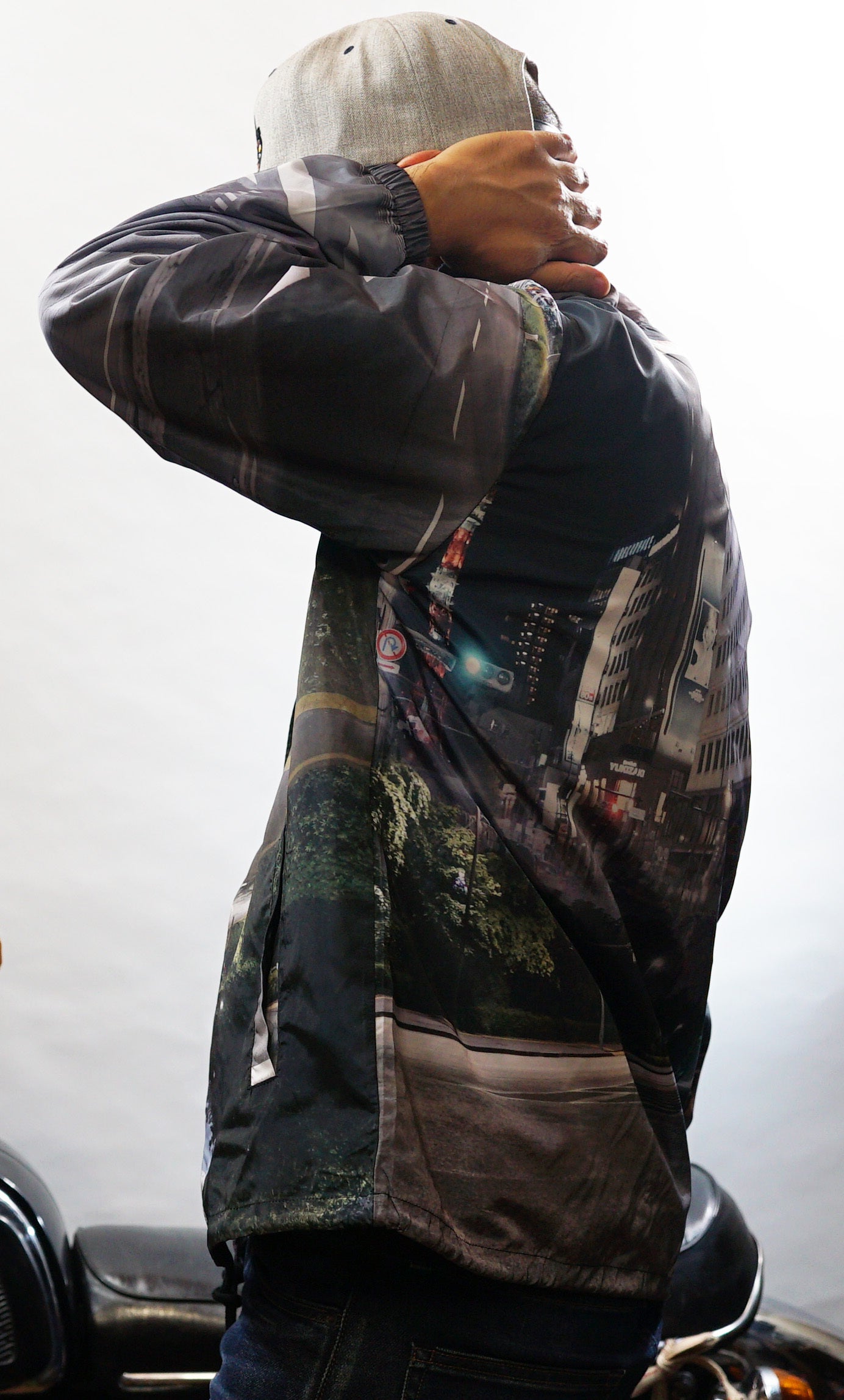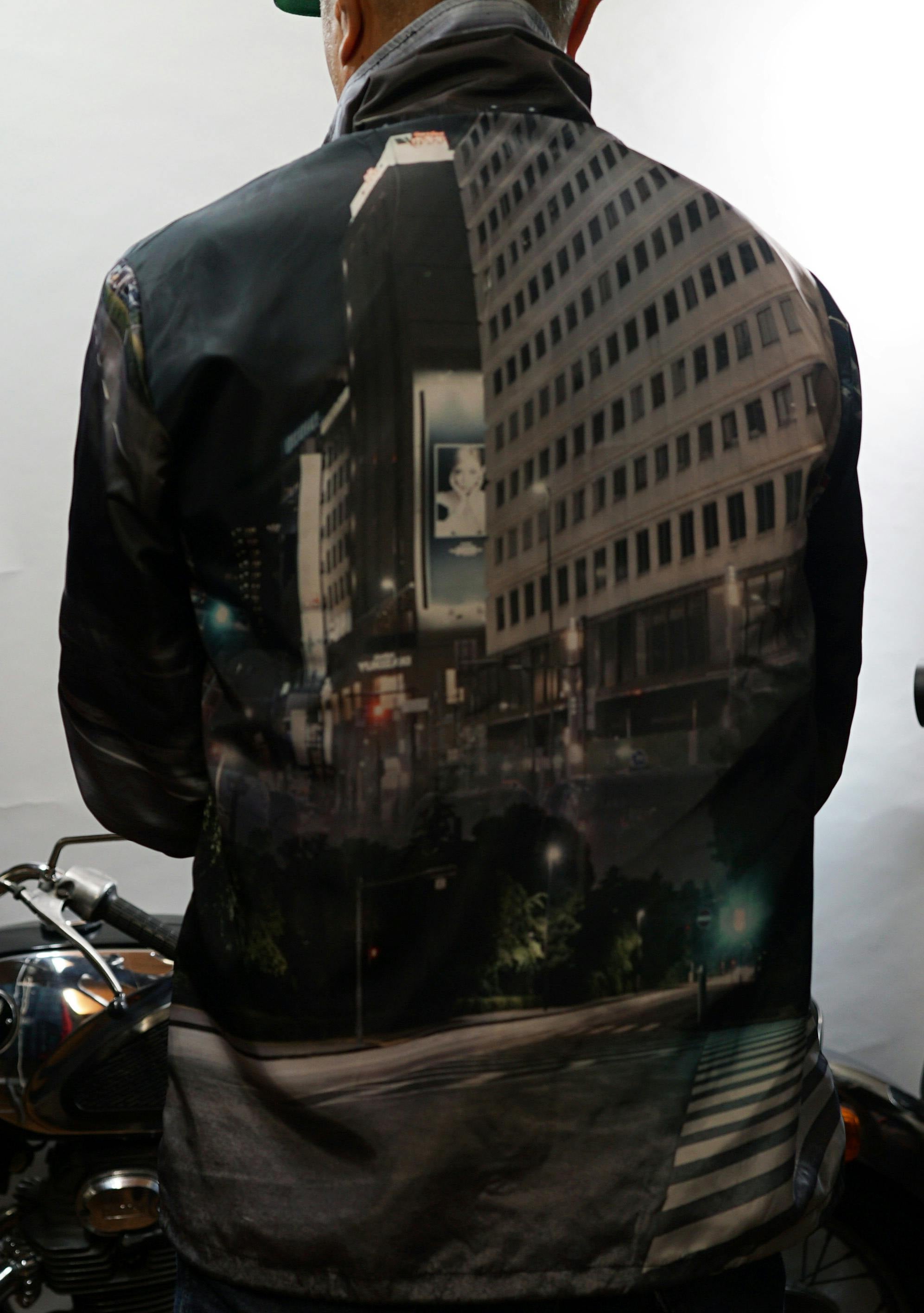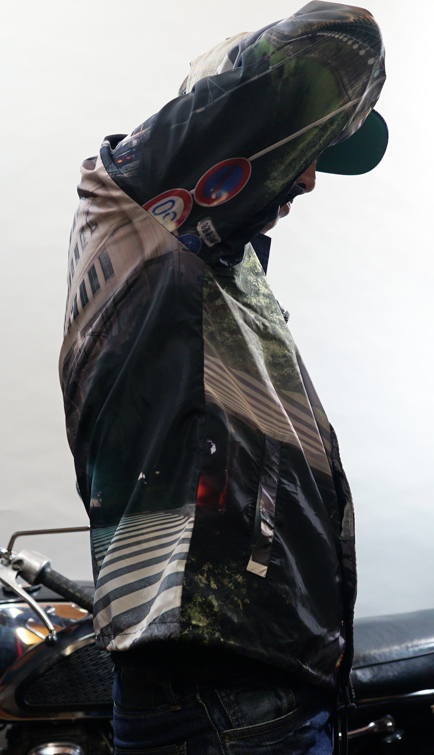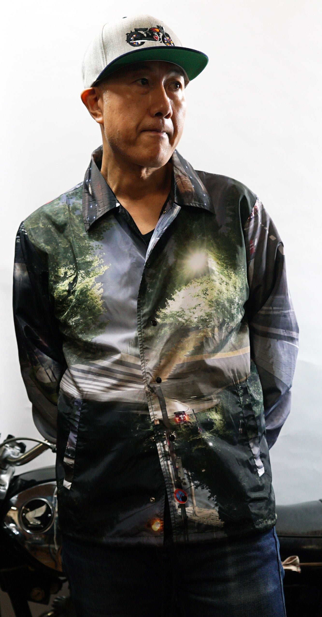 都市に住む者たちが、ふと心を休める事のできる、パワースポット、癒しの森を、臨場感あふれる路上(ライダー、ドライバー)からの視点で撮影し、大胆に服に配置した、リアルなストリートウェアを開発します。