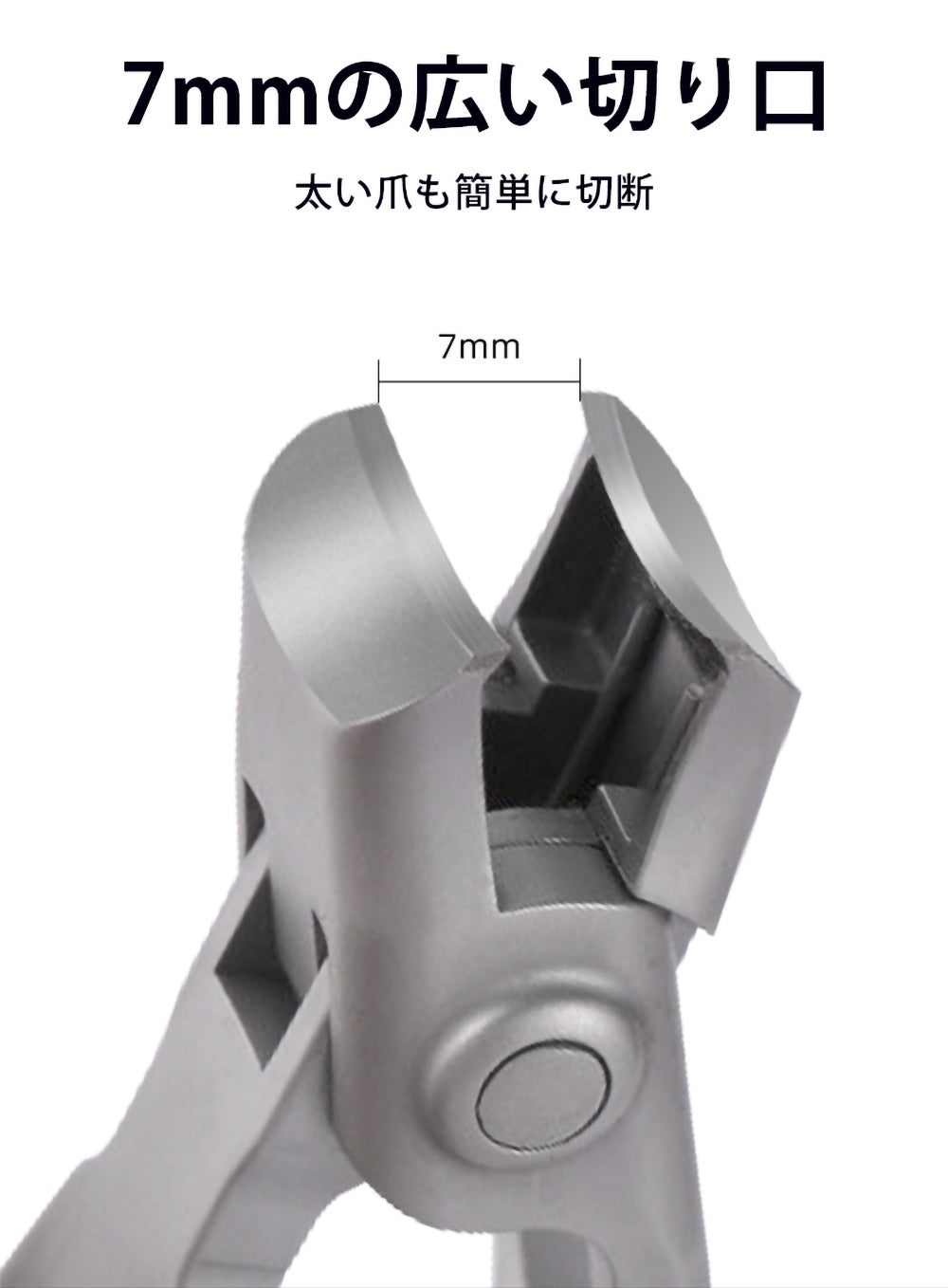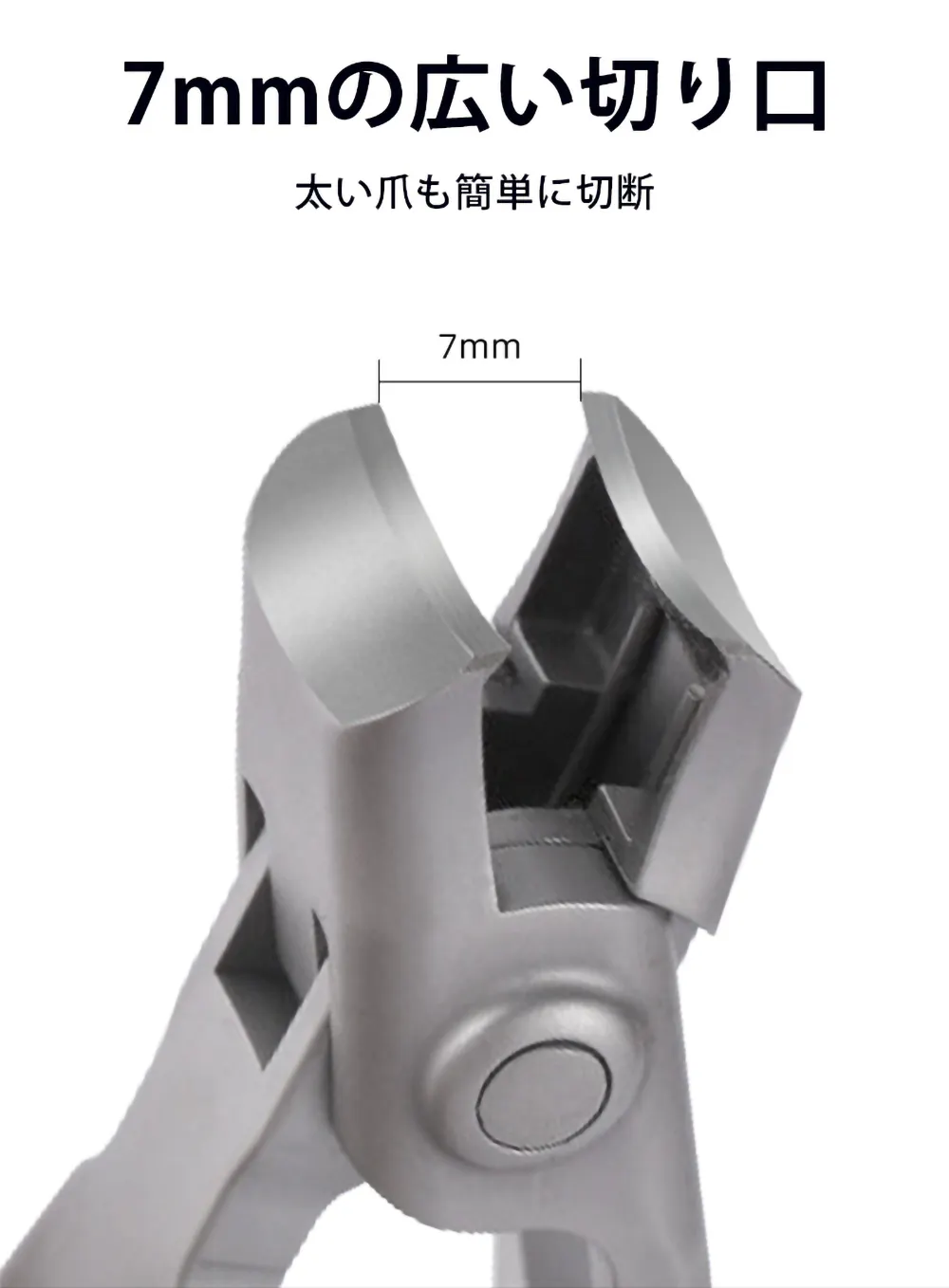 7mmの広い切り口で、足の親指などの太い爪でも簡単にお手入れできます。