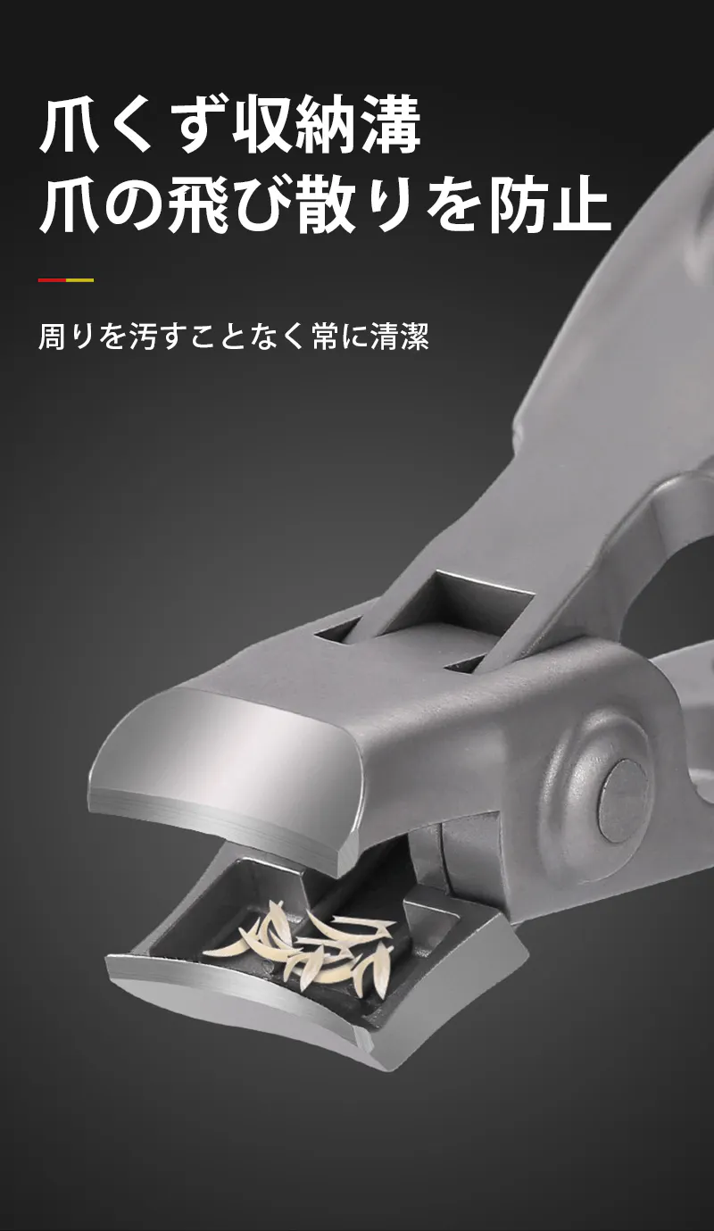 削った爪くずは本体の溝の中に貯まるので、使用後も周りを汚すことがなく簡単にお手入れできます。