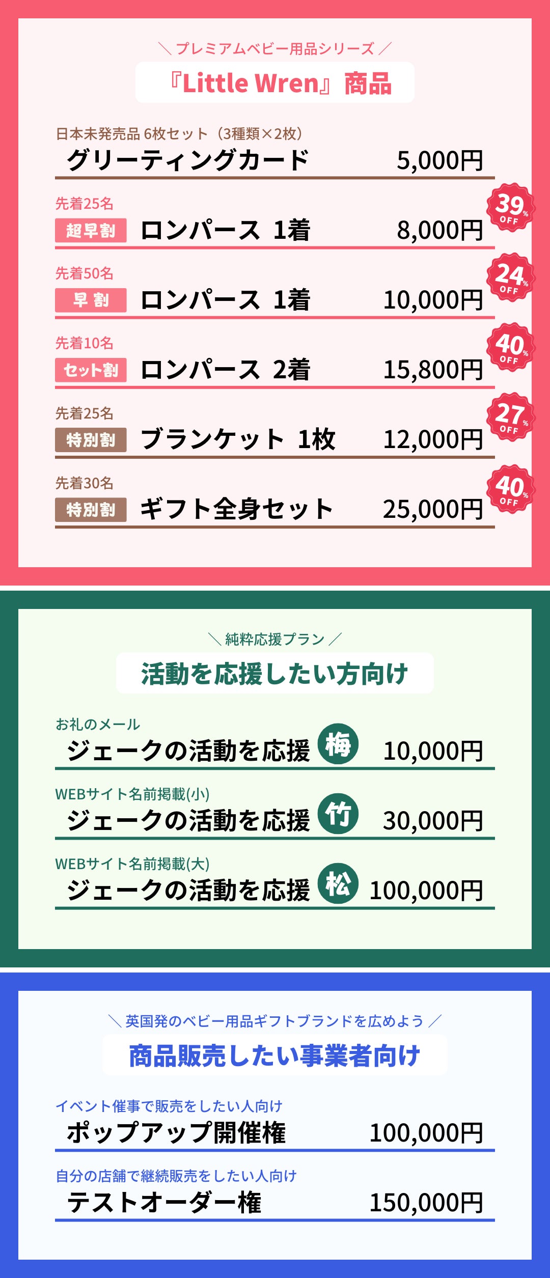 ほぼ全てのリターンがクラウドファンディング限定の特別割引価格となります!