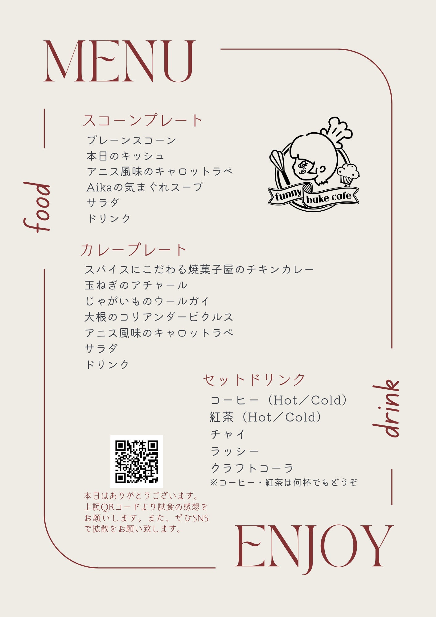 カレープレートとスコーンプレートは実際にランチとして提供させていただきます。
