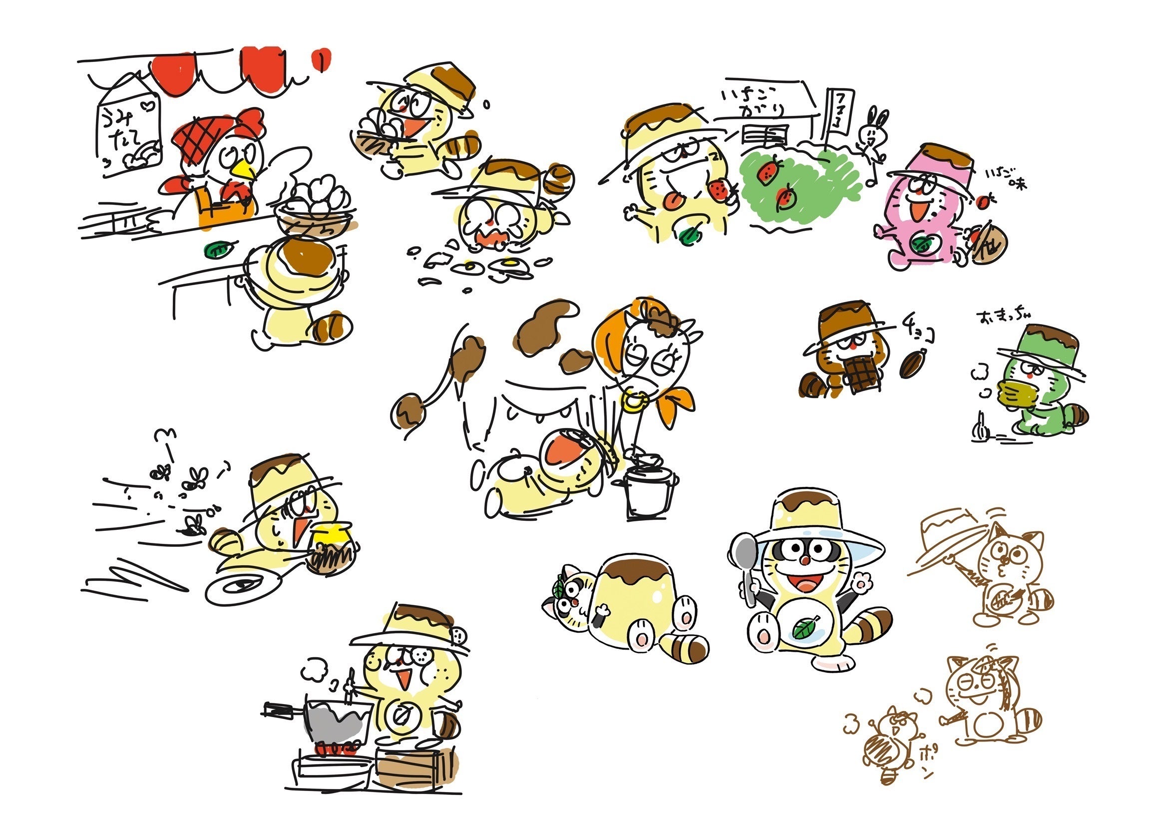 今回「木更津プリン」を盛り上げるため、木更津市に縁のある漫画家むぎわらしんたろう氏にご協力をいただき、イメージキャラクター「プリンタヌキ」が誕生しました。