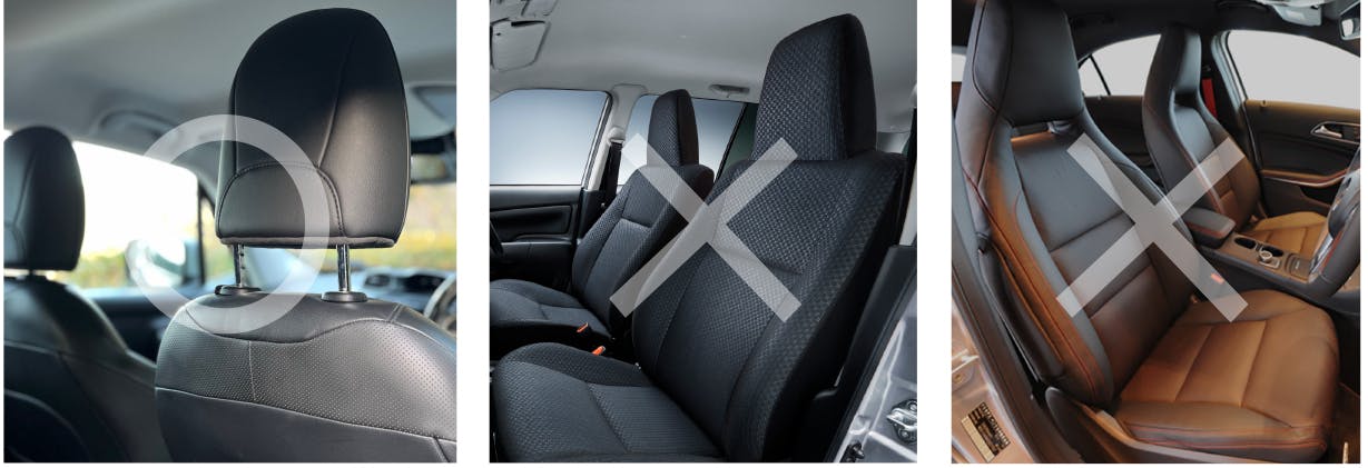 ※2本の支柱がない車種(レカロシートなどのシートとヘッドレストが一体型になっているものは取り付けできません。