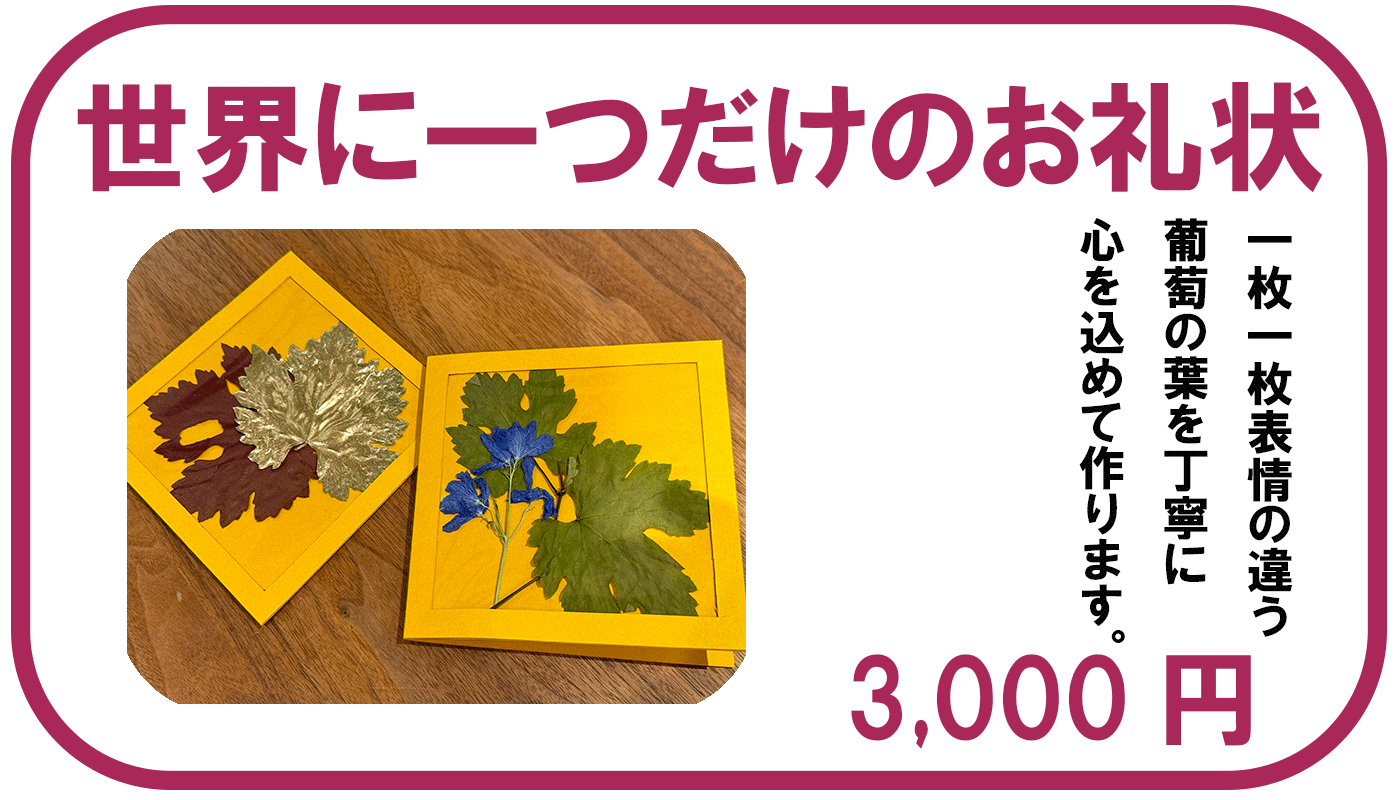 ◇自園ブドウの葉を使ったオリジナルお礼状◇