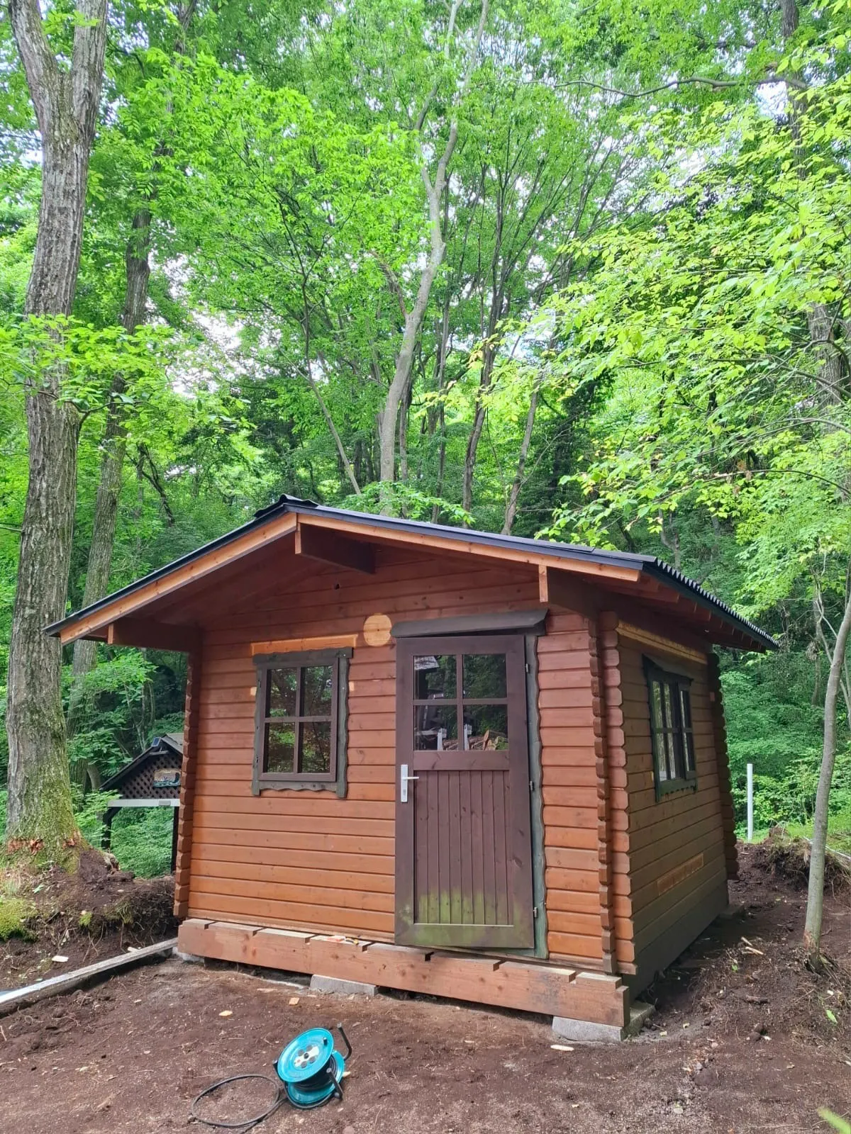 とりあえず、小屋、ウッドデッキ、電気接続まで完成です!