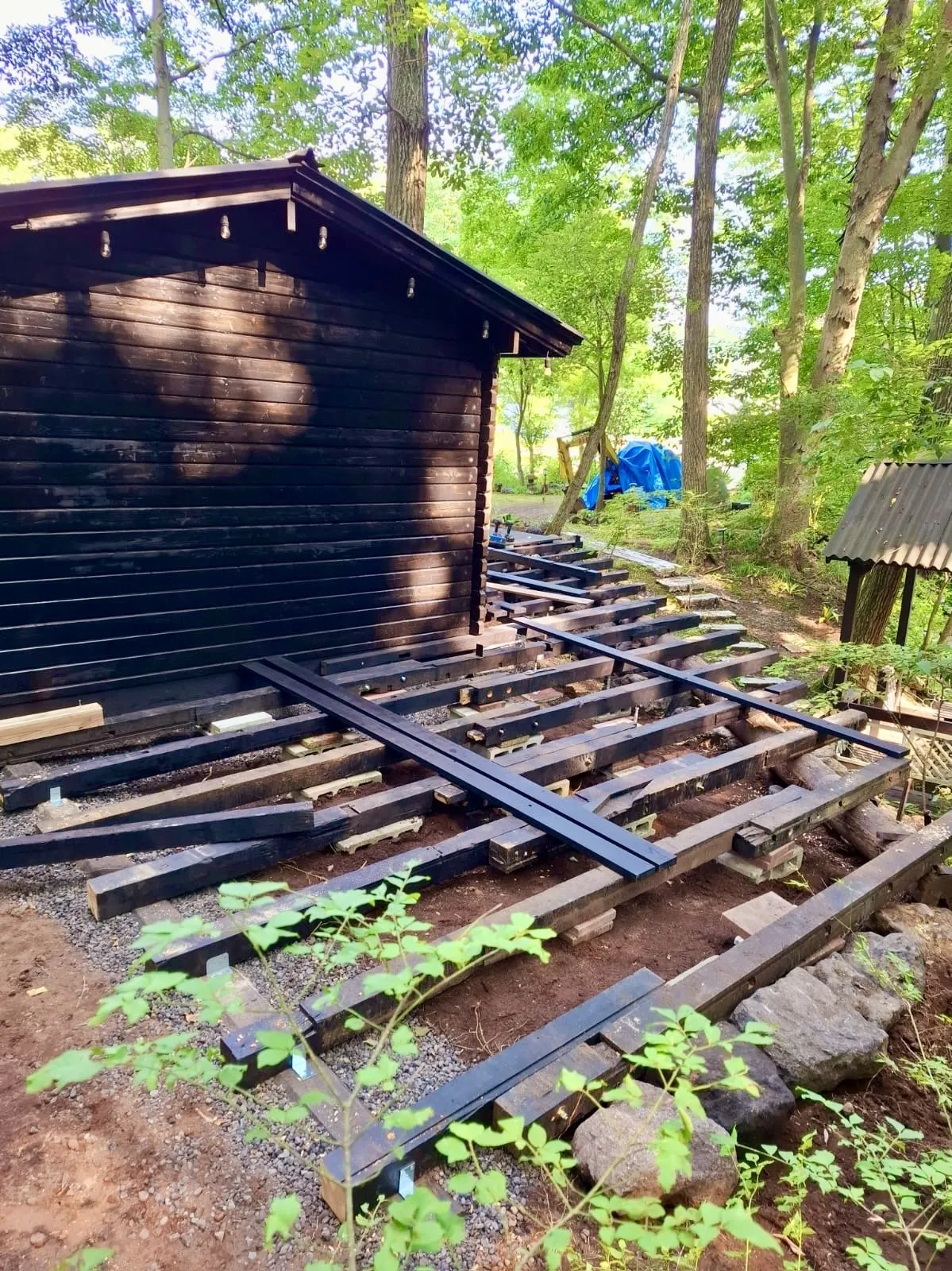 軽井沢の森に囲まれた、素晴らしい環境のサウナ作りに是非★ご協力★お越しください!
