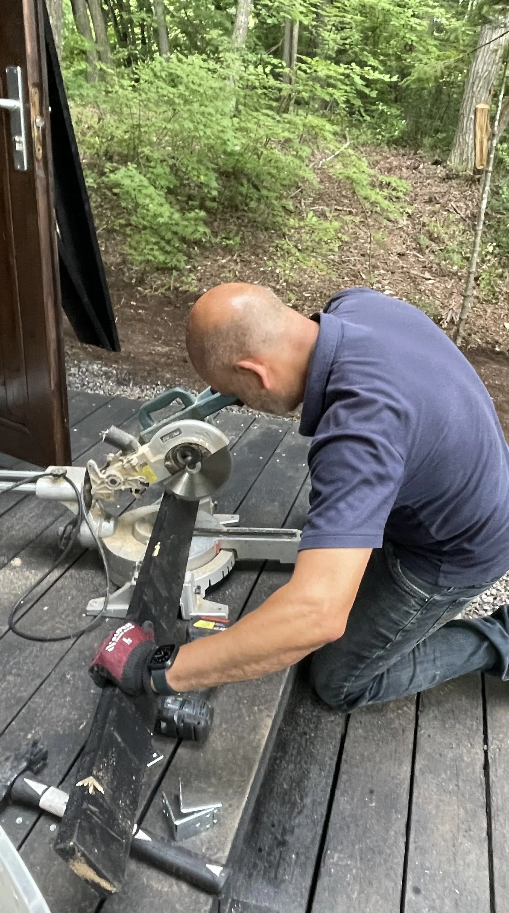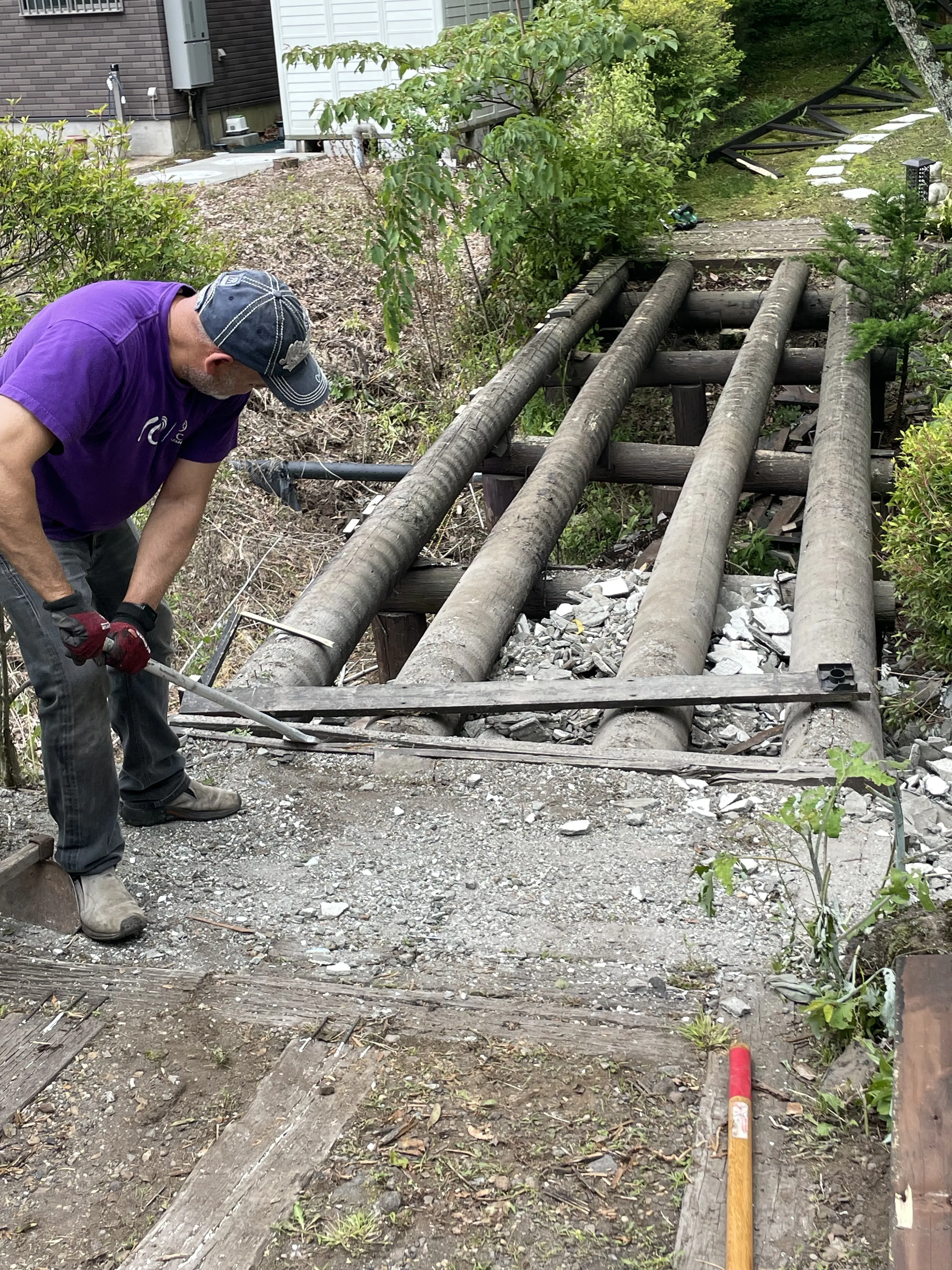 橋の解体作業中 ⬇️ 使える木材は、ちゃんと再利用♻️