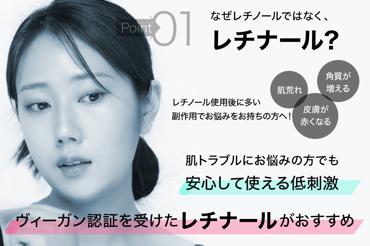 肌への刺激を十分にテストして開発されているため、今までレチノールが肌に合わず諦めていた方でも安心してお使い頂けます!