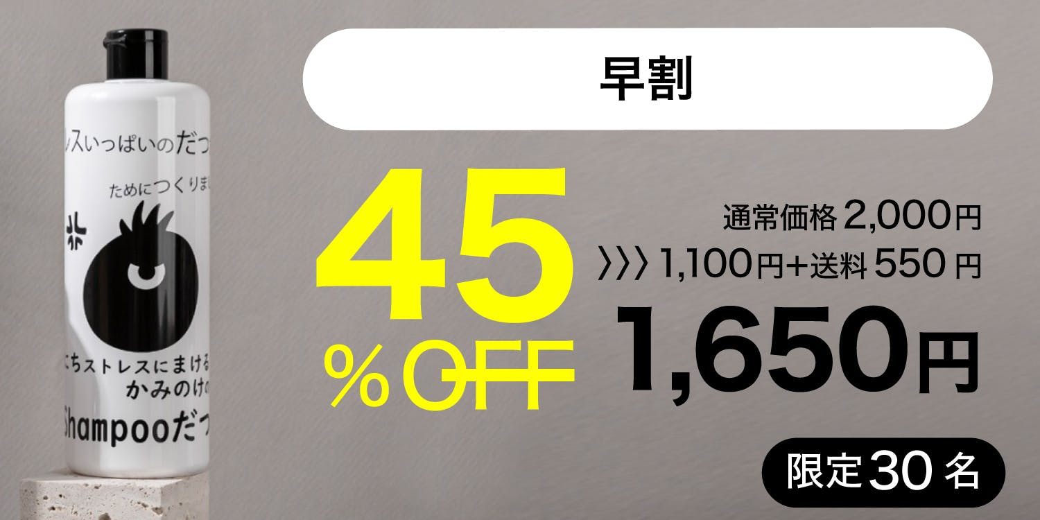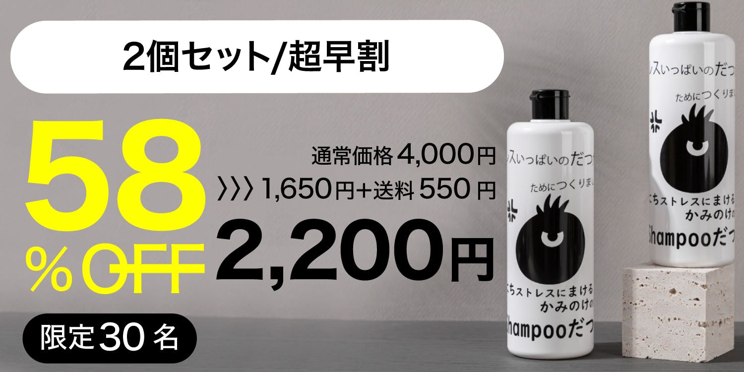 だつだつシャンプーは、髪のケアを通じて皆様のストレス緩和のお手伝いができればと思い開発されました。