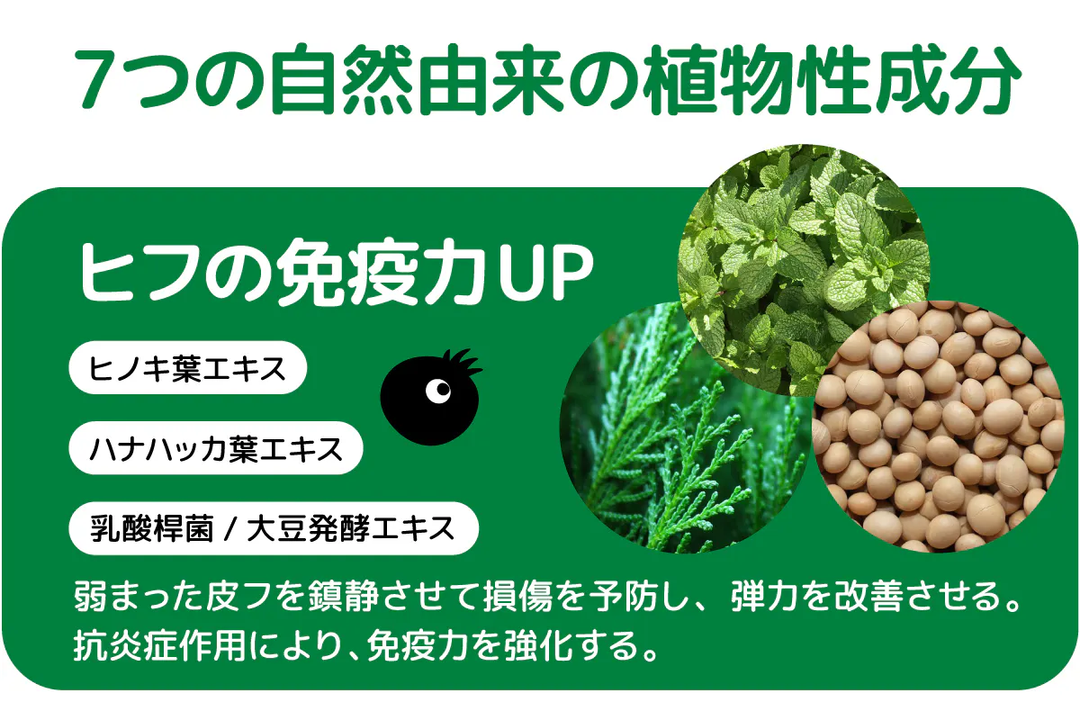 皮膚の鎮静ケア、弾力改善、抗炎症作用による免疫力強化、有害物質の除去...など