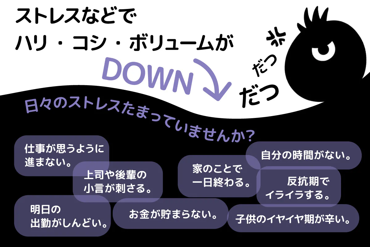 老若男女問わず、現代はあらゆるストレスが蔓延しています。ストレスの影響は心だけでなく、体や髪にも!