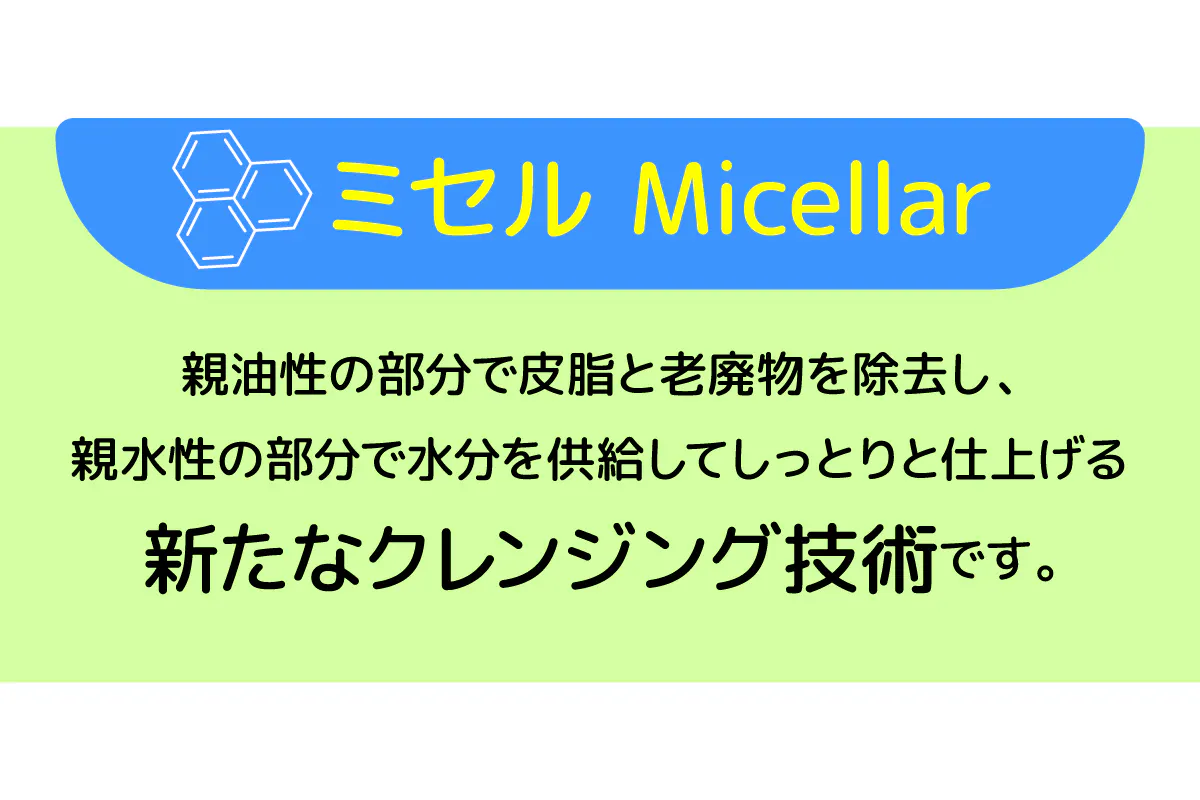 これらが結合した自然由来の界面活性剤ミセル(Micellar)が不要な皮脂や老廃物だけを除去し、水分を残してしっとりと仕上げます。
