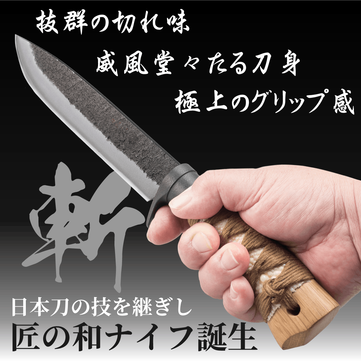 匠の和ナイフ『黒不动』は高知県の伝統工芸、土佐打ち刃物のブレードに日本刀の柄巻きを施し、キャンプなどのアウトドアで日本の刃物の素晴らしさを実感してもらえるように商品開発しました。