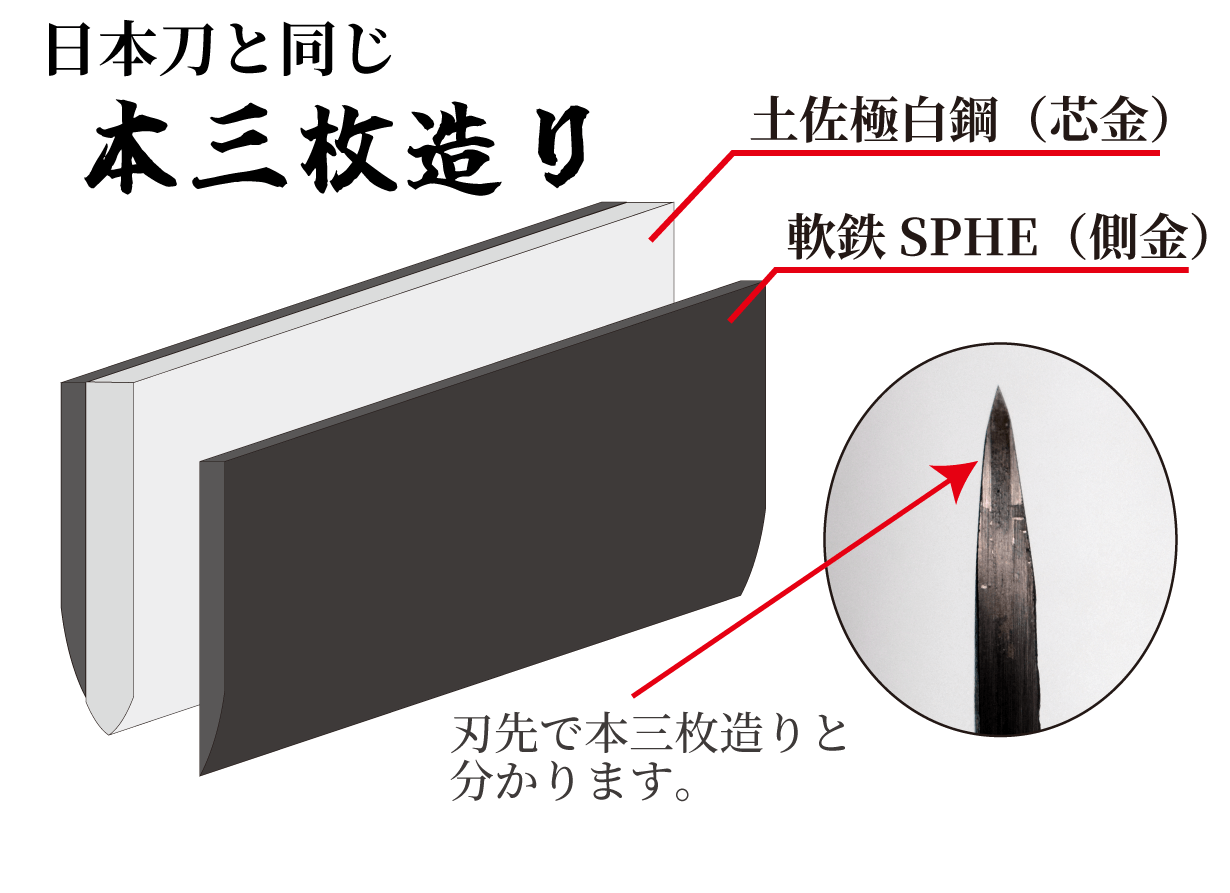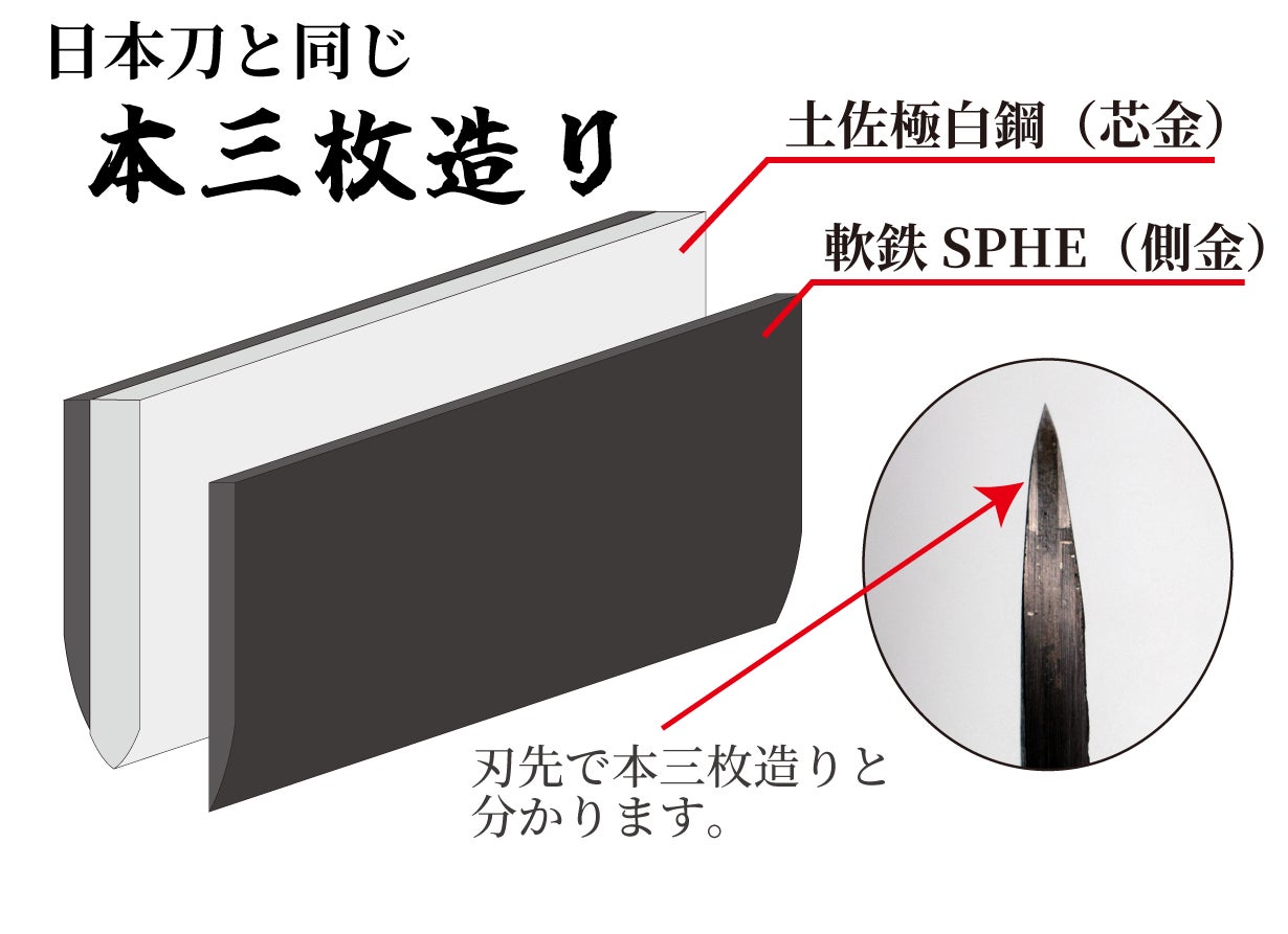 材質:ブレード/(刃金)土佐極白鋼、(側金)軟鉄(SPHE)、