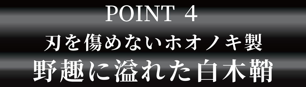 A.木鞘はもともとマタギや林業の人たちが使っていた入れ物です。刃と鞘の隙間に小枝を挟むと音が止み、なおかつ移動中に鞘から抜けにくくなります。