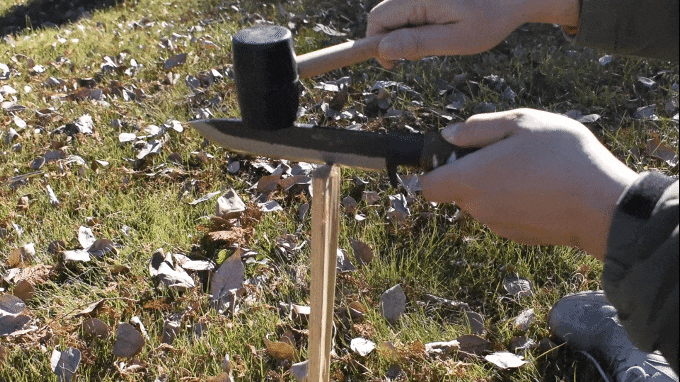 ※注意 金属製のハンマーや石など硬い素材で叩くとナイフやハンドルが破損するので絶対にやめてください。
