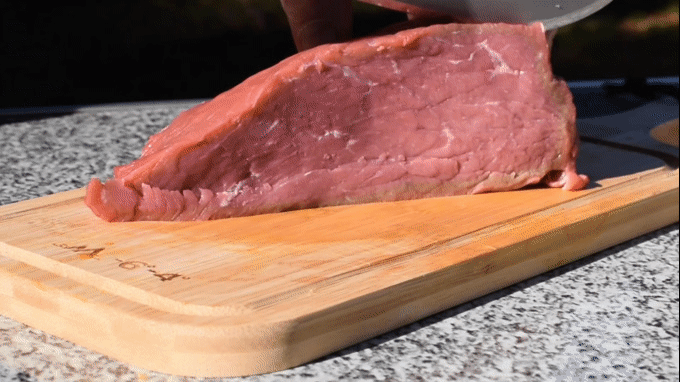 アウトドアでのBBQの醍醐味、肉の塊もご覧の通り切れ味鋭くカット。