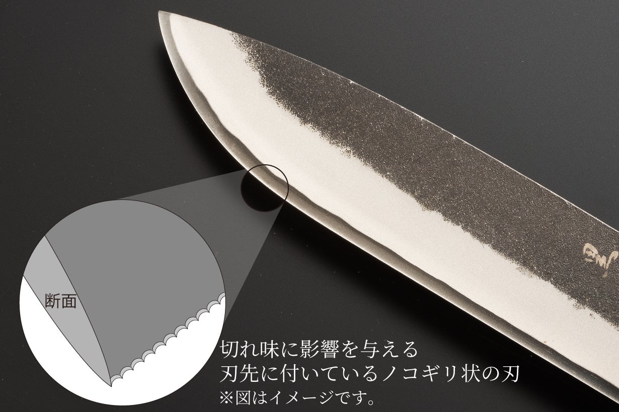 また土佐極白鋼は西洋ナイフで使われるステンレス鋼と違い、日本刀の素材と同じ炭素鋼の一種です。そのため錆びやすいのですが、炭素量が多いと切れ味が増します。