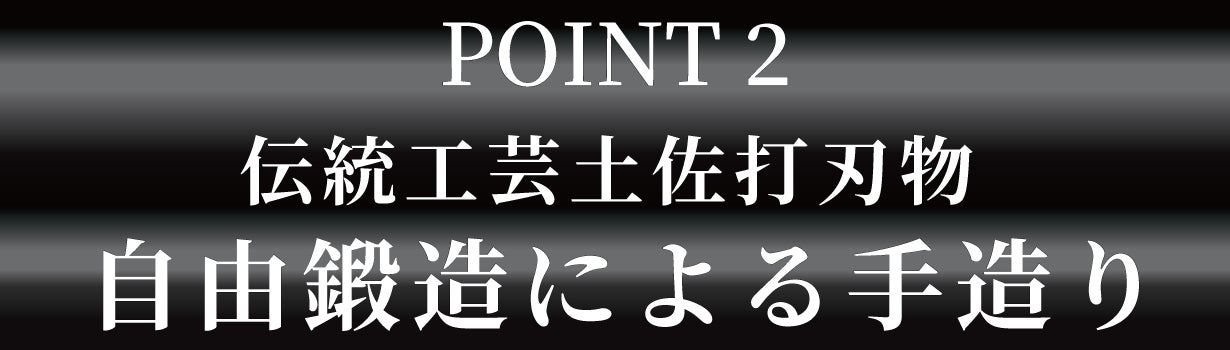 400年以上の歴史を誇り日本の伝統工芸である土佐打ち刃物の刃物職人の手により自由鍛造で鍛え上げた本三枚造りの豪壮な刀身、