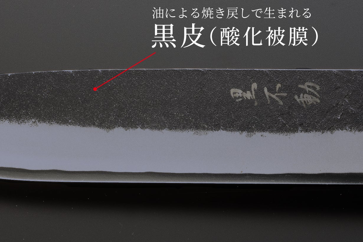 また油で焼き戻しを行うと、油に含まれる炭素と軟鉄の表面が結合し、「黒皮」と呼ばれる酸化被膜を形成します。