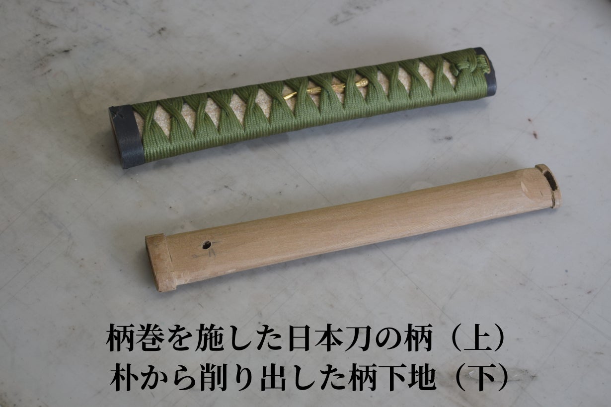 日本刀の柄巻きではハンドルに本鮫皮を被せます。