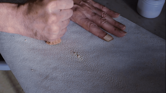 そして柄巻師は茅の根を束ねて作った浮造(うづくり)と呼ばれる研磨具と、「イボタ」と呼ばれるイボタノキに付くカイガラムシが分泌する蝋を粉末化した磨き粉で、鮫革を艶が出るまで何時間もかけて磨き上げます。