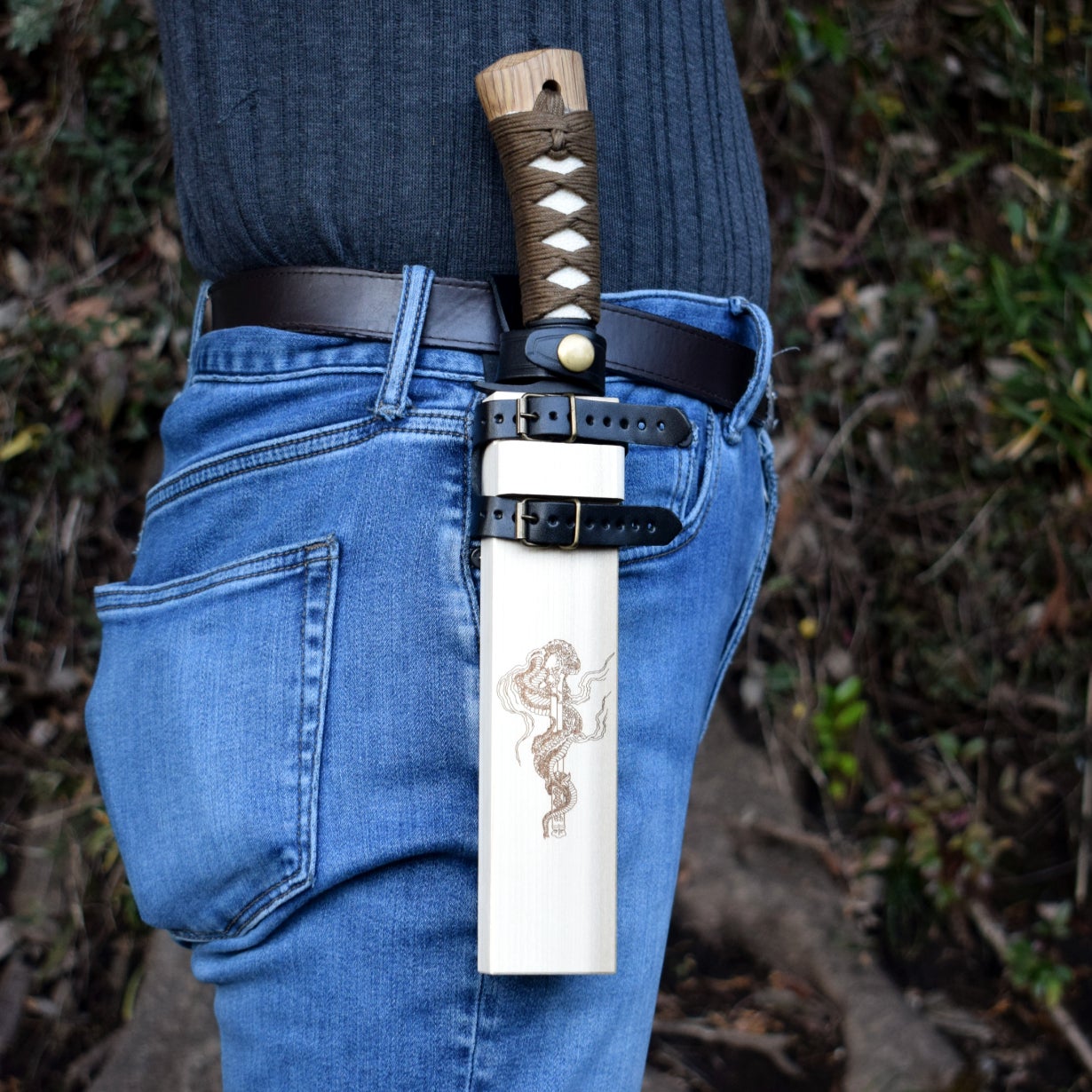 さらにシースには日本が世界に誇る浮世絵師・葛飾北斎が描いた「倶利伽羅龍」をレーザー彫刻しました。その迫力ある姿に、毎回ナイフを使うのが楽しくなります。
