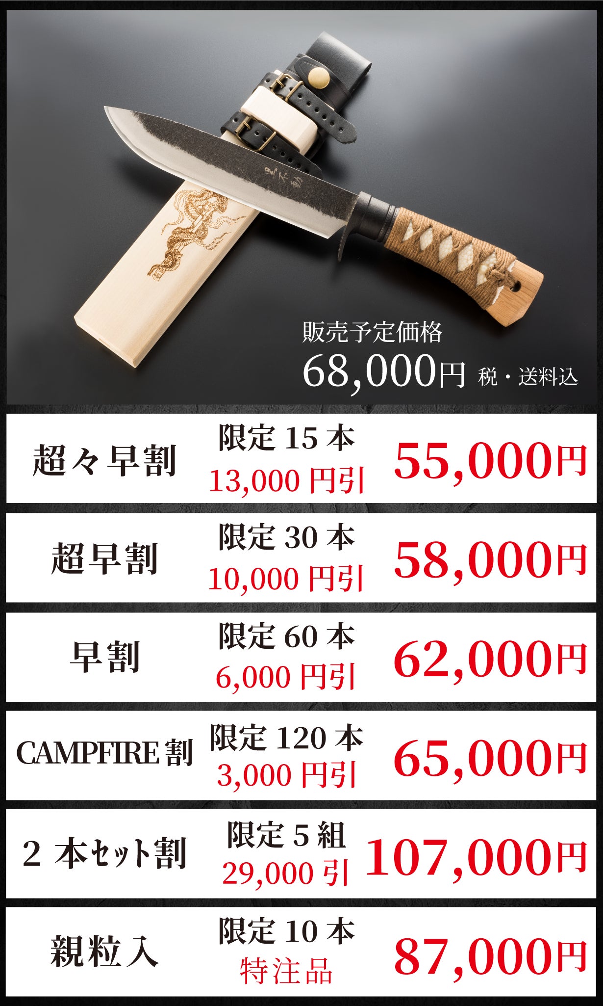 本品はOEM商品です。ブレードの制作に有限会社トヨクニさんに協力して頂いていますが、リターン商品は完成までに複数の工房が関わっています。商品の質問や納期等、有限会社トヨクニさんへの直接問い合わせはご遠慮ください。仮にお問い合わせいただいても、お応えしないという取り決めを交わしています。