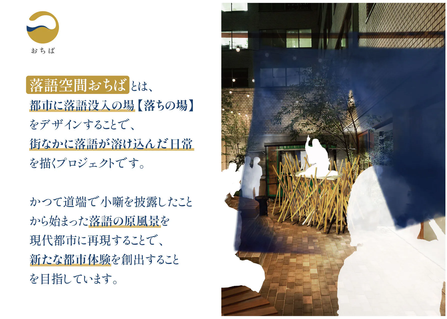 このおちばプロジェクトは、私が学部時代から取り組んできた「落語×建築」の集大成として、