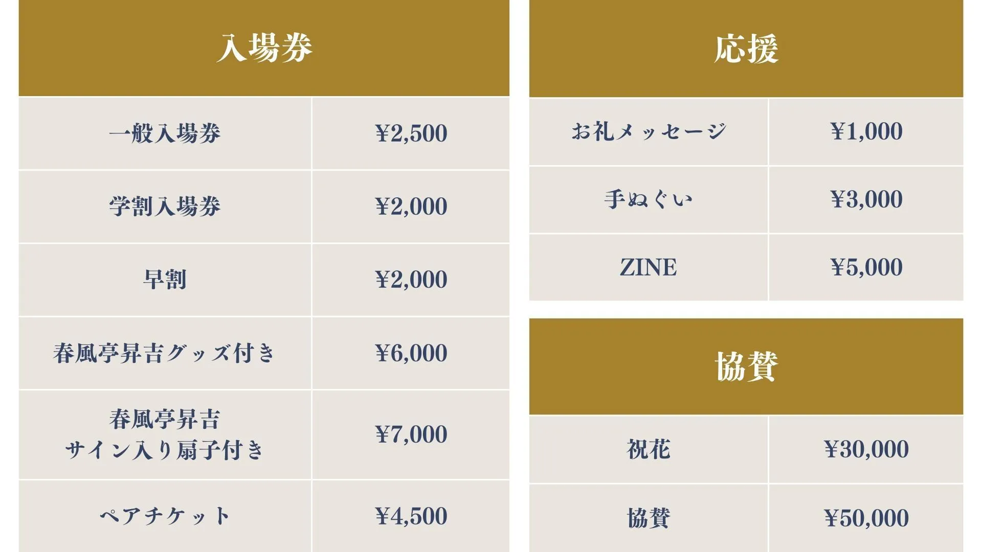 各回チケットのお取扱いは、CAMPFIREのリターンでご用意しております。