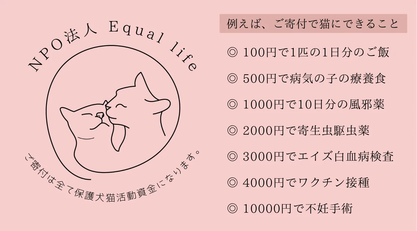 2025/01/01 23:20皆様、明けましておめでとうございます。NPO法人Equallife 鈴木明日香です。この度は沢山のご支援やご協力、温かい応援を頂きまして、誠にありがとうございました。目標には届きませんでしたが、この度のプロジェクトで無事に795000円の活動資金を集める事ができました。そしてこのプロジェクトを知り、銀行振込や直接手渡しにて数人の方から647000円のご寄付をいただきました。合計1442000円を本年の活動資金として大切に使わせていただきます。(実際に活動資金として使えるのは、クラウドファンディングにかかる手数料・リターン費用を引いた金額となります。)皆様のおかげで、目の前にいる助けを求める怪我や病気をしている子を十分な医療にかけ、お腹を空かせている子に十分なご飯をあげる事が出来ます。正直な話、資金の問題でこれが十分には出来ない時もあり、それが一番悔しいです。なので、ご協力をして下さった皆様に心から感謝申し上げます。本当にありがとうございました!簡潔な挨拶になりますが、また改めて個別にお礼のメッセージやリターンの発送、ご報告をさせていただきます。本年も、これからも、エクアルライフを温かく見守り続けて下さると心強いです。よろしくお願いいたします!!皆様、良いお正月をお過ごし下さい。 もっと見る