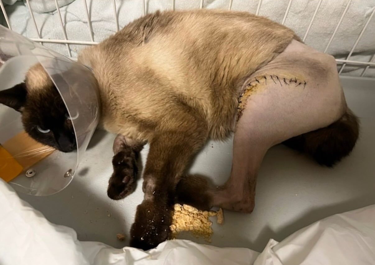 そして10日間の入院、数時間の手術の末、戻ってきたボンドくん。