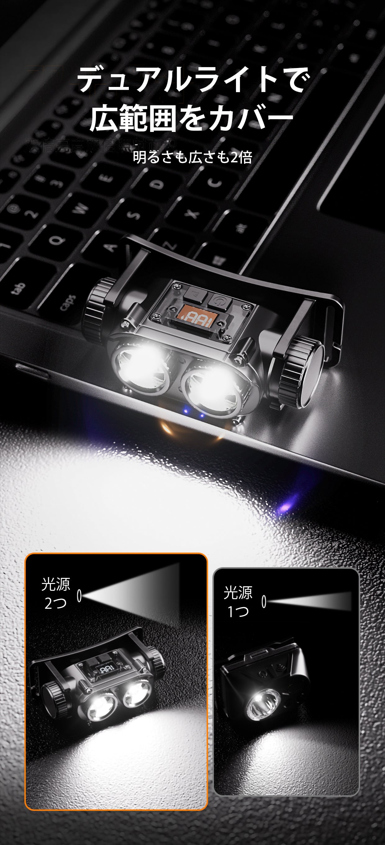 2つのライトを採用しているため、より広範囲をカバーできます。