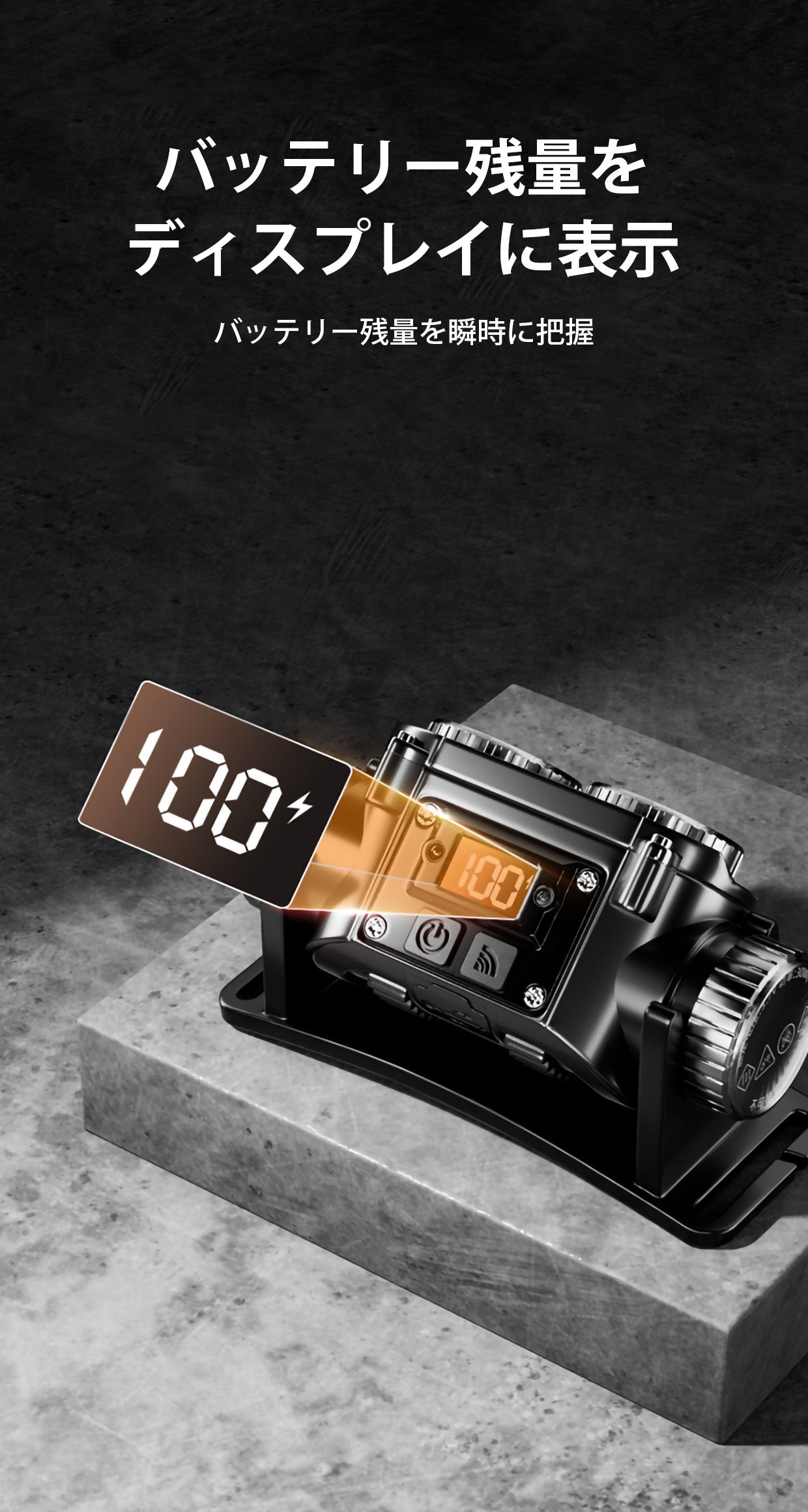 高画質ディスプレイでバッテリー残量を随時確認することができます。