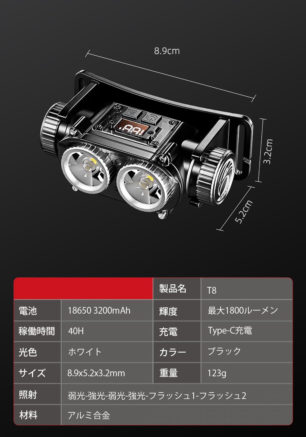 しかし、T8は1800ルーメンもあり、前方を一瞬で明るく照らします。