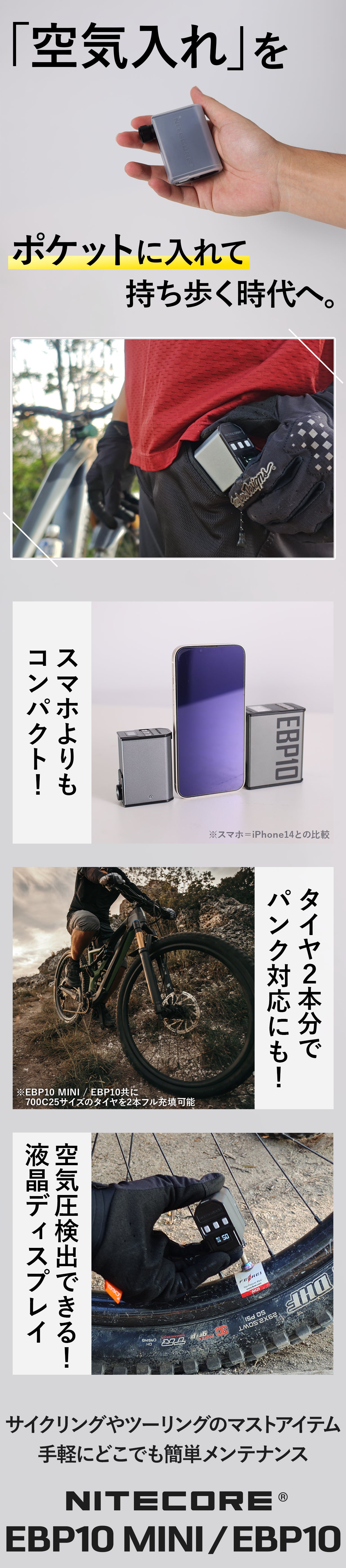 でもパンクした時の応急キットメンテナスセットは絶対に必要、そんな時にEBP10 MINIならバッグの空きを確保しつつ、電動ポンプを持ち運べます!