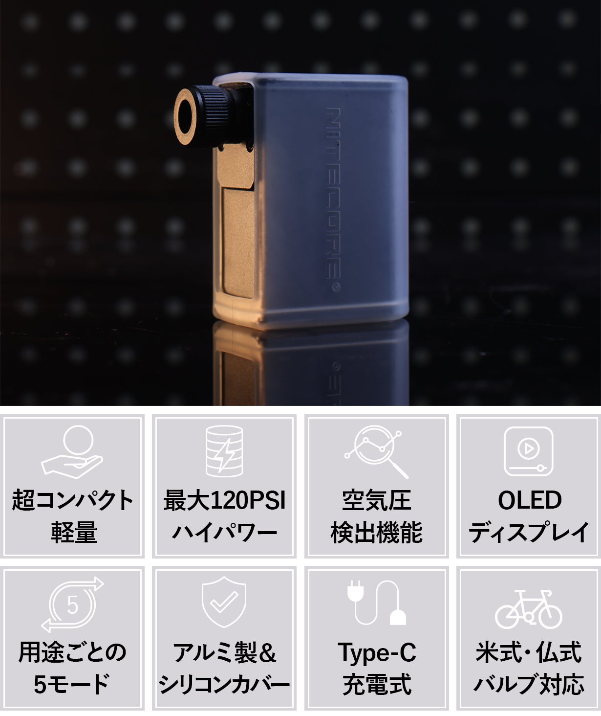 手のひらサイズで軽量、ポケットや小さい鞄にも簡単に持ち運べる電動エアポンプは、空気圧検出機能を搭載したOLEDディスプレイを備えています。120PSIと144PSIの2種類から選べるポンプは、700C25サイズのタイヤを2本フル充填可能。これにより、メンテナンスがより簡単で効率的に行えます!