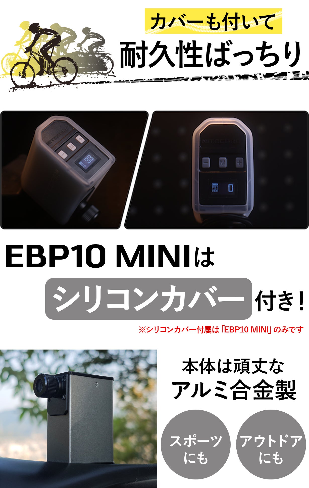 EBP10 MINIは頑丈なアルミニウム合金製&シリコンカバー付属で、耐久性が求められるアウトドアやスポーツサイクルにもぴったり!