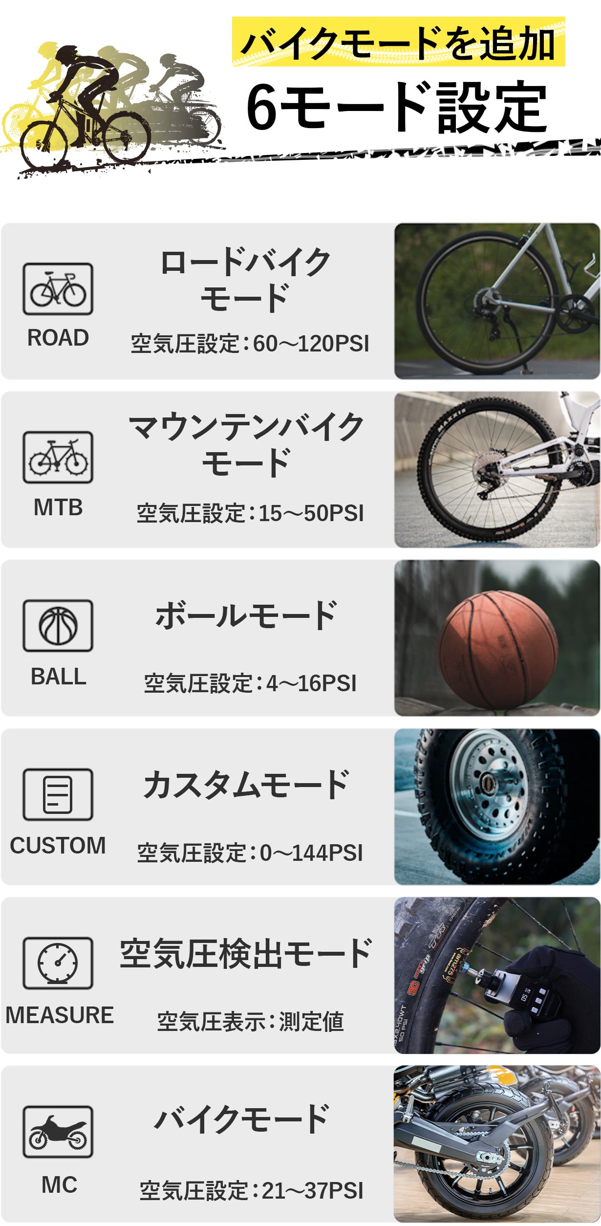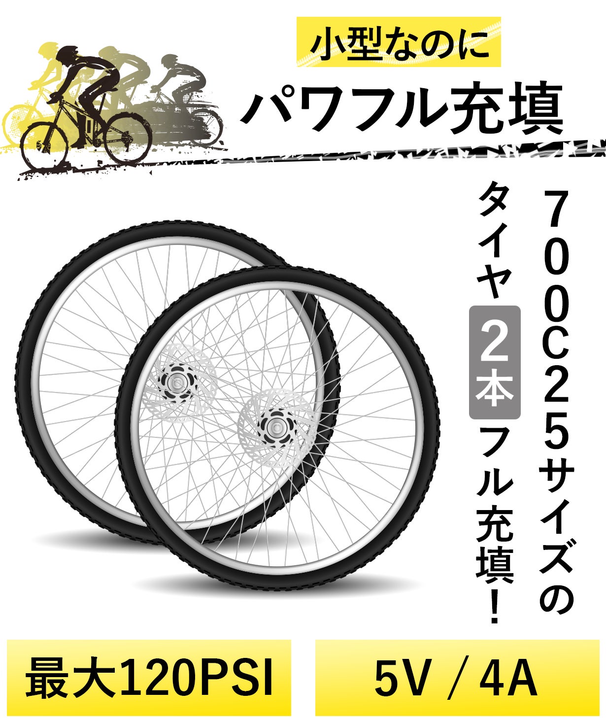 パワーが必要なマウンテンバイクやBMXのタイヤも充填できます。