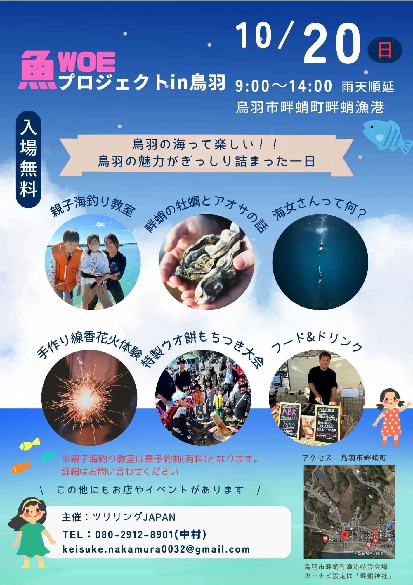 2024/09/23 21:40【着々と準備中】プロジェクトへのご支援、ご協力いただきありがとうございます。イベント当日に向け、実行委員会では着々と準備を進めております!昨年以上により皆様に喜んでいただけるよう、色々と企画を進めております。「釣り」がメインのイベントではありますが、釣りをされない方もご参加いただけるよう、入場無料で下記のコーナーで楽しんでいただけます!●フードコーナー→ABK焼き(アワビ、えび、数種類の海藻入り)→とこよの郷キッチンカー(ブルーベリースムージー等)→その他多数●海女さんのハナシ→日本最多の海女さんがいる相差町から・・・現役海女さんにるリアルな海女トーク!!!●牡蠣とアオサのハナシ→畔蛸町は牡蠣やアオサが有名!水産研究所の先生から牡蠣やアオサの魅力をお話いただきます!●手作り線香花火作り体験→創業140周年の伊勢花火屋さん「辻傳煙火店」の手作り線香花火作り体験!●WOEプロジェクト特製「WOE餅」餅つき大会!→有名料理長監修!昨年、大好評だった「WOE餅」鯛の切り身や出汁を入れた特製餅を皆んなでついて、皆で食べよう!!!この他にも企画中のものもありますので・・・是非、当日もお気軽にお越しくださいませ! もっと見る