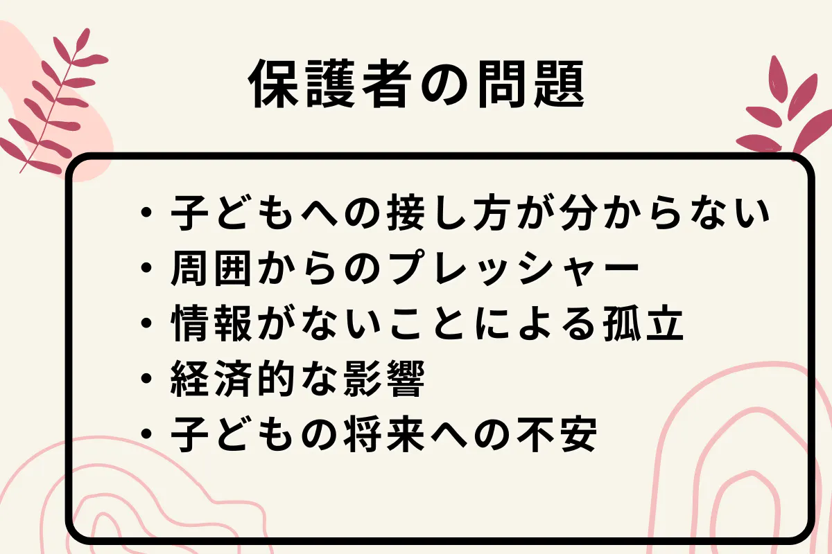 周囲からの批判や無理解、経済的な負担がさらにその悩みを深刻化させます。情報の不足や孤立感も、解決策を見つける難しさを増し、保護者の精神的な負担をさらに大きくする要因となっています。